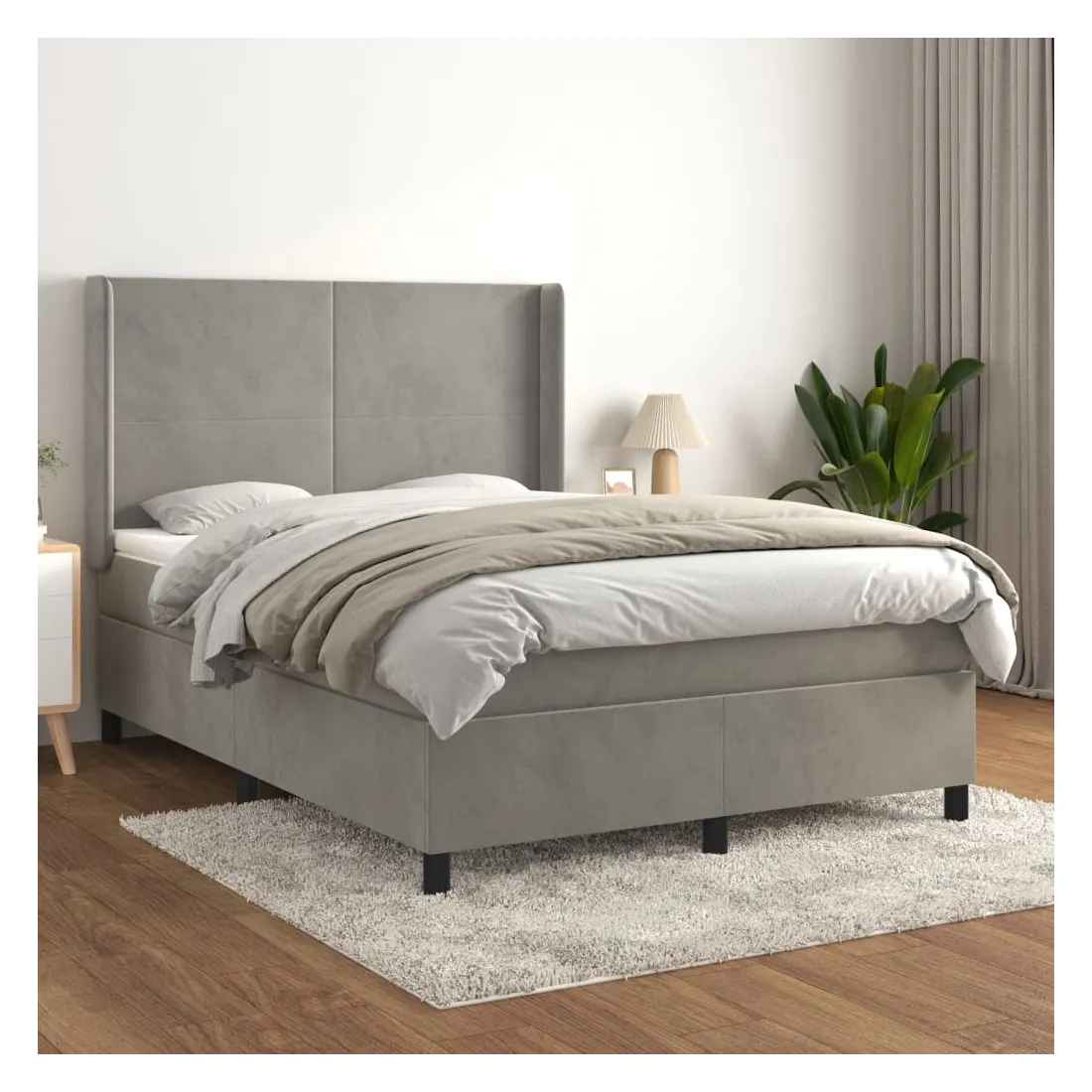Sommier à lattes de lit et matelas Gris clair 140x200cm Velours