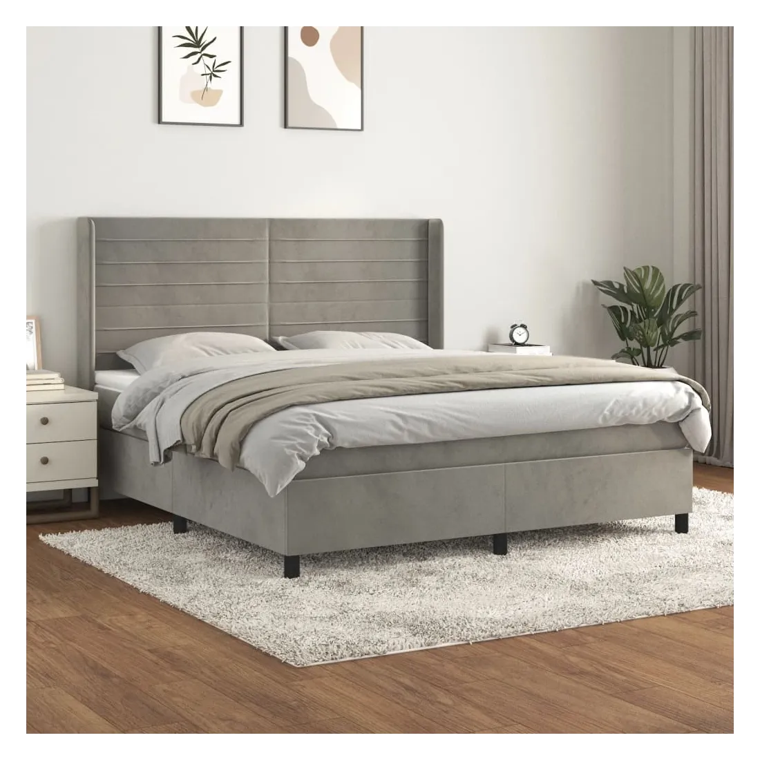 Utilisez ce lit à sommier pour profiter d'une nuit de sommeil réparatrice ! Il vous offre une relaxation maximale et un sommeil agréable. Velours doux : le velours est un tissu doux et luxueux qui se reconnaît à son tas dense de fibres uniformément coupées qui ont une touche lisse. Le tissu en velours présente un toucher doux distinctif, ce qui le rend confortable au toucher.Tête de lit pratique : la tête de lit est réglable en hauteur selon vos préférences. La tête de lit vous offre un excellent soutien du dos lorsque vous êtes assis dans votre lit pour lire ou regarder la télévision.Matelas à ressorts ensachés : le ressort ensaché individuel intégré est connu pour sa très haute qualité tout en assurant un haut niveau de durabilité et d'adaptabilité. Il peut absorber efficacement le bruit et les chocs causés par les sauts et les rotations.Support moyen-dur : ce matelas de lit offre une stabilité accrue et juste le niveau de fermeté sans sacrifier le confort. Il est donc idéal pour les personnes qui dorment sur le dos ou sur le ventre.Protège-matelas doux pour la peau : le protège-matelas est recouvert d'un tissu résistant et doux pour la peau, ce qui le rend souple et confortable. Remarque :Pour des raisons d'hygiène, le matelas ne peut pas être retourné si l'emballage est retiré ou ouvert.Chaque produit est livré avec un manuel de montage dans la boîte pour un montage facile.