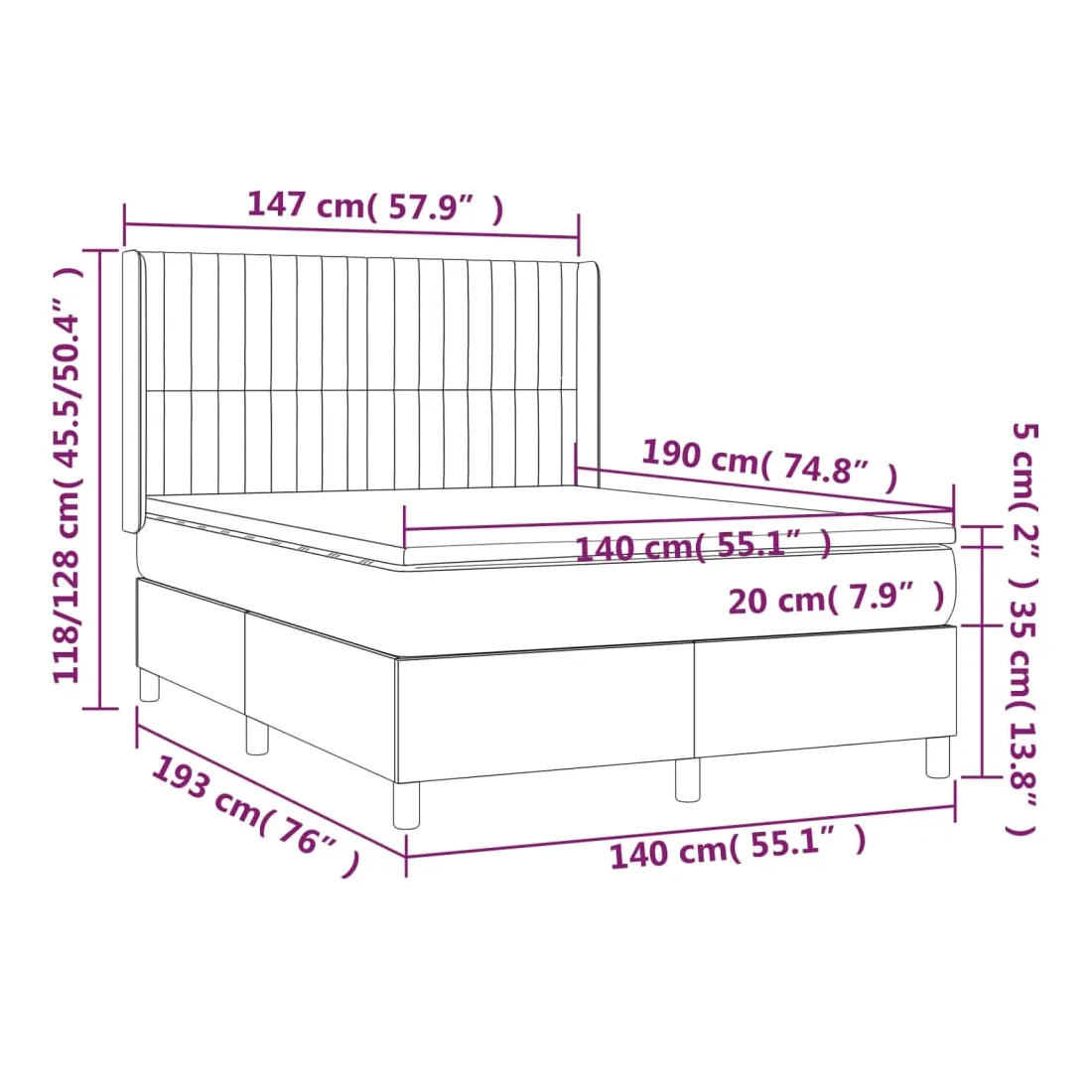 • Dimensions : 140 x 190 x 20 cm (l x L x H)