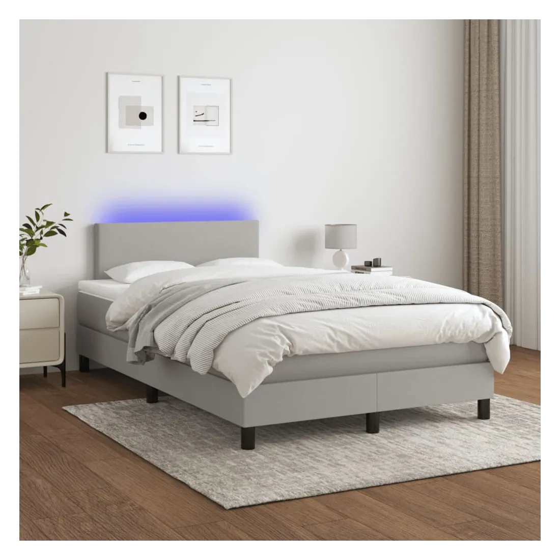 Sommier à lattes de lit matelas LED Gris clair 120x200 cm Tissu