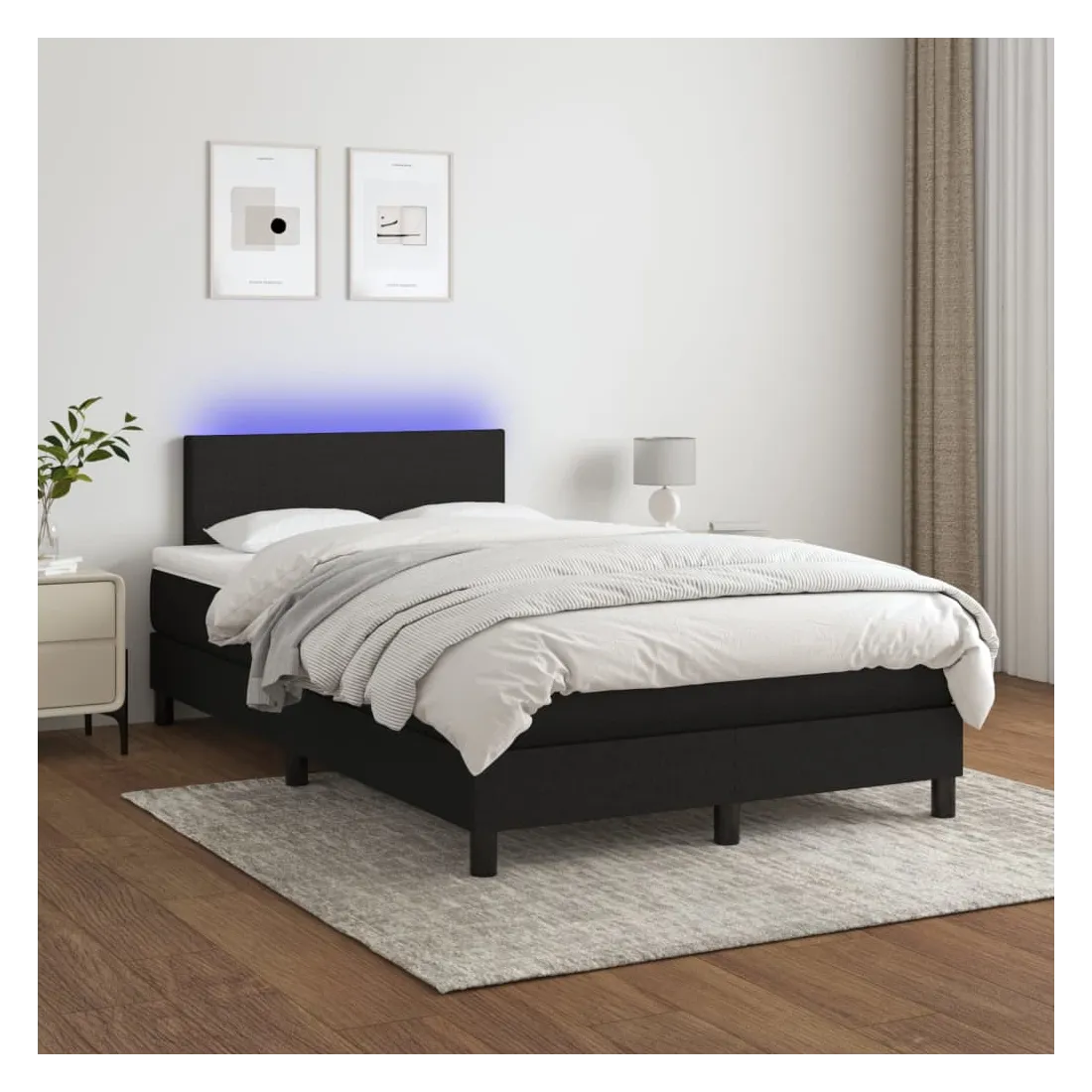 Utilisez ce sommier tapissier avec matelas et LED pour profiter d'un sommeil réparateur ! C'est le point central de votre chambre à coucher. Tissu durable : le tissu présente un aspect simple et épuré, et il est respirant et durable.Tête de lit pratique : la tête de lit est réglable en hauteur selon vos préférences. La tête de lit vous offre un excellent soutien du dos lorsque vous êtes assis dans votre lit pour lire ou regarder la télévision.Bande LED colorée : apportez de l'éclairage dans l'obscurité avec des lumières LED colorées !Matelas à ressorts ensachés : le ressort ensaché individuel intégré est connu pour sa très haute qualité tout en assurant un haut niveau de durabilité et d'adaptabilité. Il peut absorber efficacement le bruit et les chocs causés par les sauts et les rotations.Protège-matelas doux pour la peau : le protège-matelas est recouvert d'un tissu résistant et doux pour la peau, ce qui le rend souple et confortable. Remarque :Pour des raisons d'hygiène, le matelas ne peut pas être retourné si l'emballage est retiré ou ouvert.Chaque produit est livré avec un manuel de montage dans la boîte pour un montage facile.Seule la partie avec un symbole de ciseaux peut être coupée et seule la partie avec l'USB continuera à fonctionner comme avant.Ce produit est doté d'un connecteur USB, mais la source d'alimentation certifiée de USB 5V n'est pas incluse.