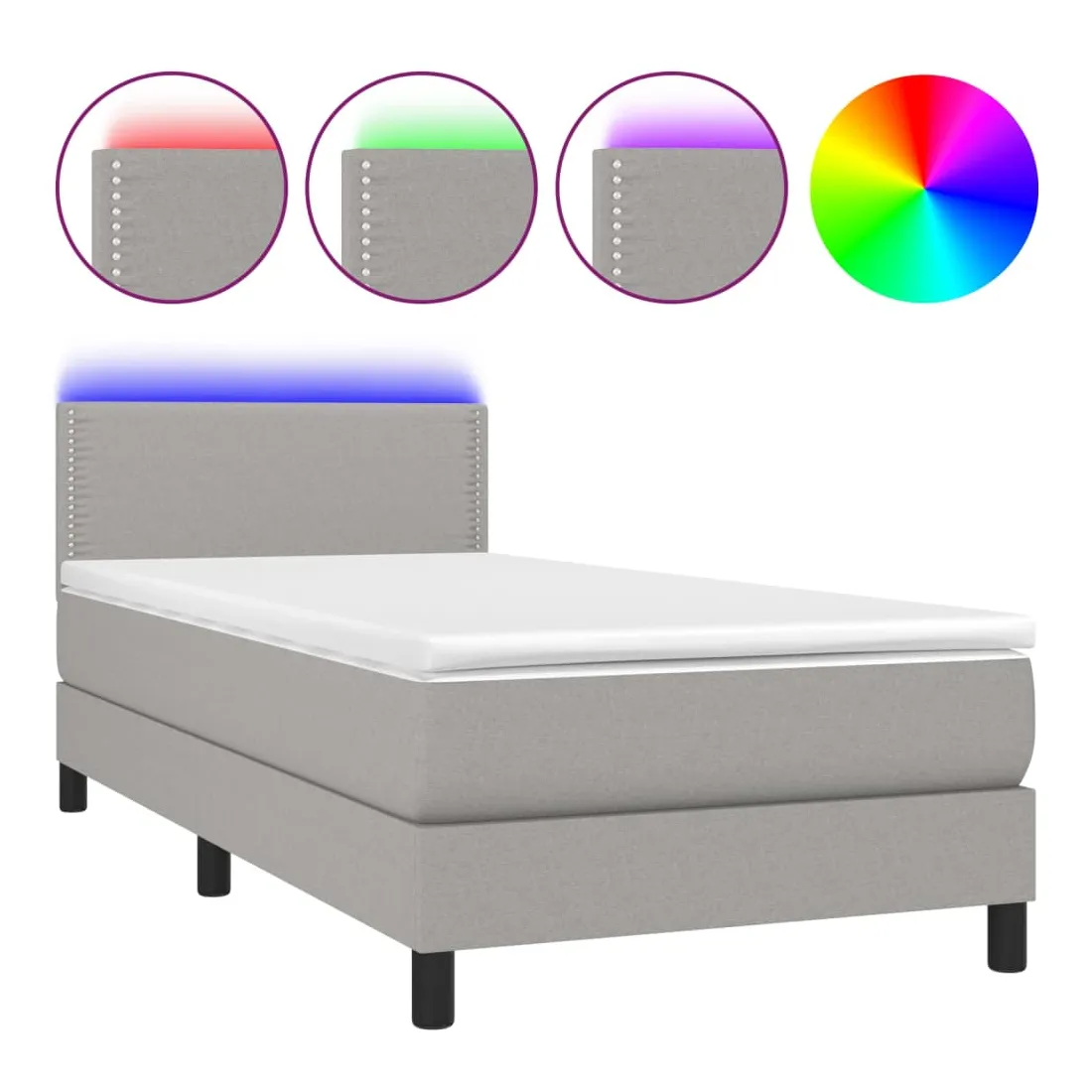 Sommier à lattes de lit avec matelas et LED Gris clair 90x190cm
