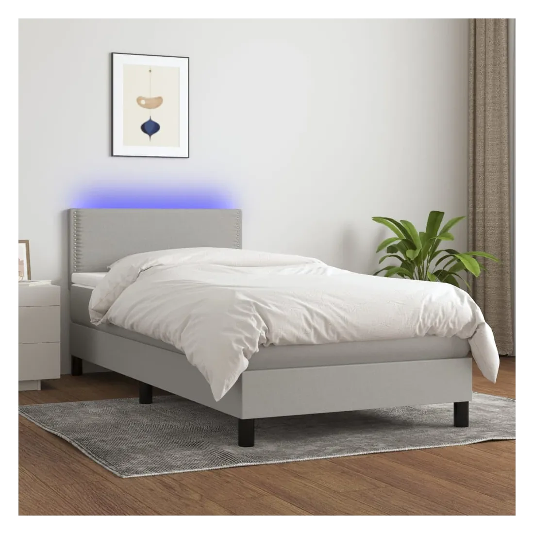 Sommier à lattes de lit avec matelas et LED Gris clair 90x200cm