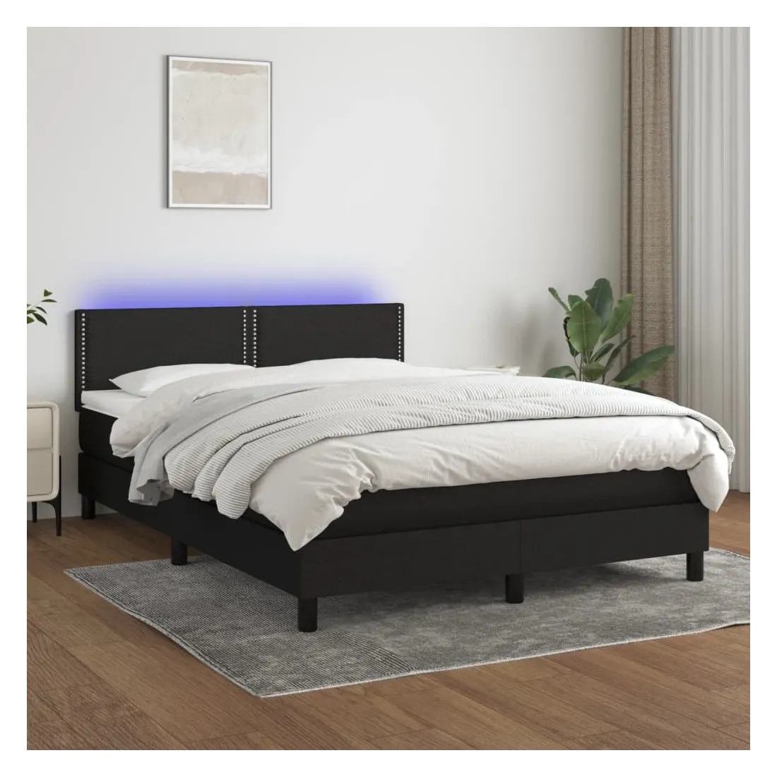 Sommier à lattes de lit avec matelas LED Noir 140x190 cm Tissu