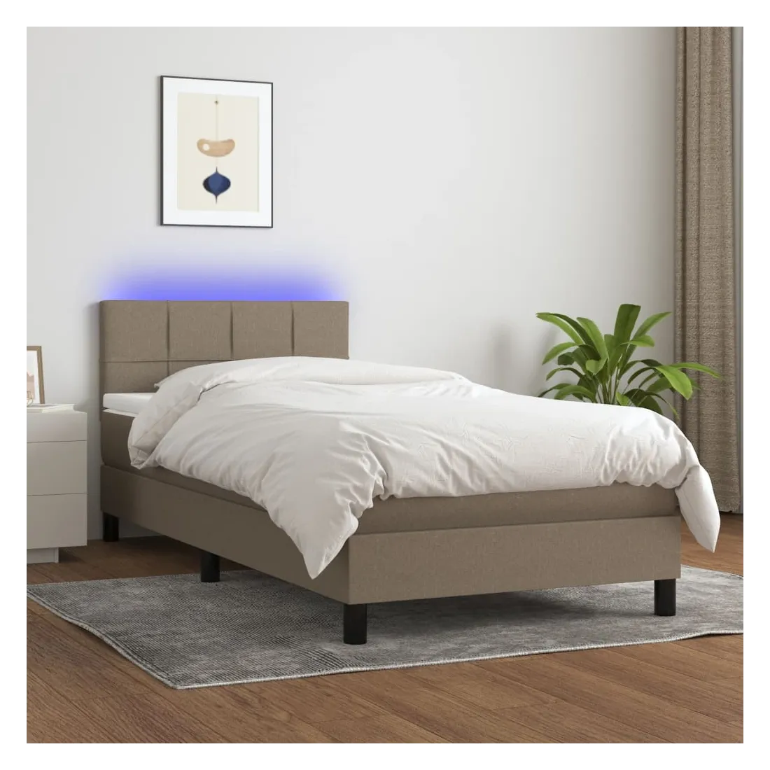 Sommier à lattes de lit avec matelas LED Taupe 100x200 cm Tissu