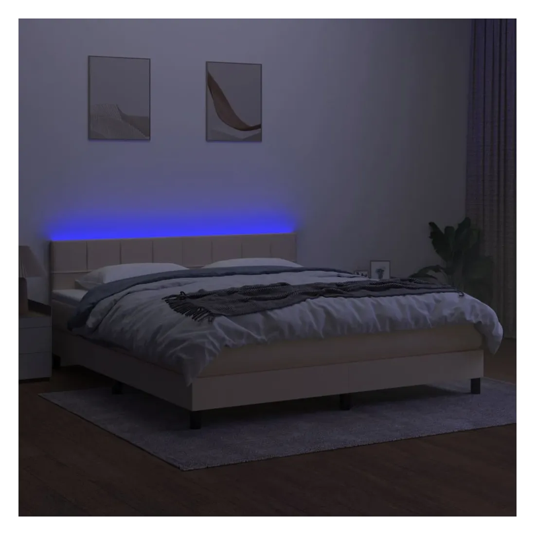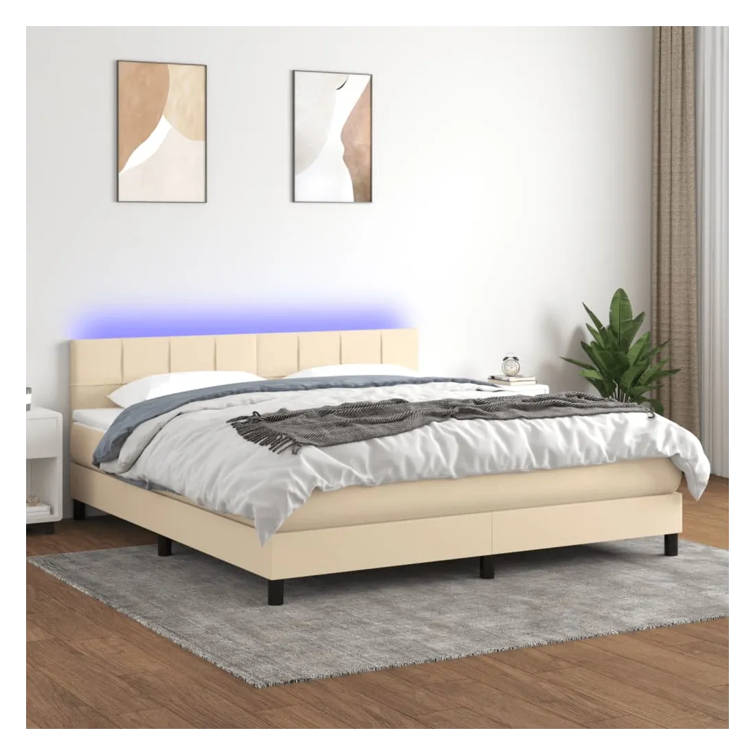 Sommier à lattes de lit avec matelas LED Crème 180x200 cm Tissu