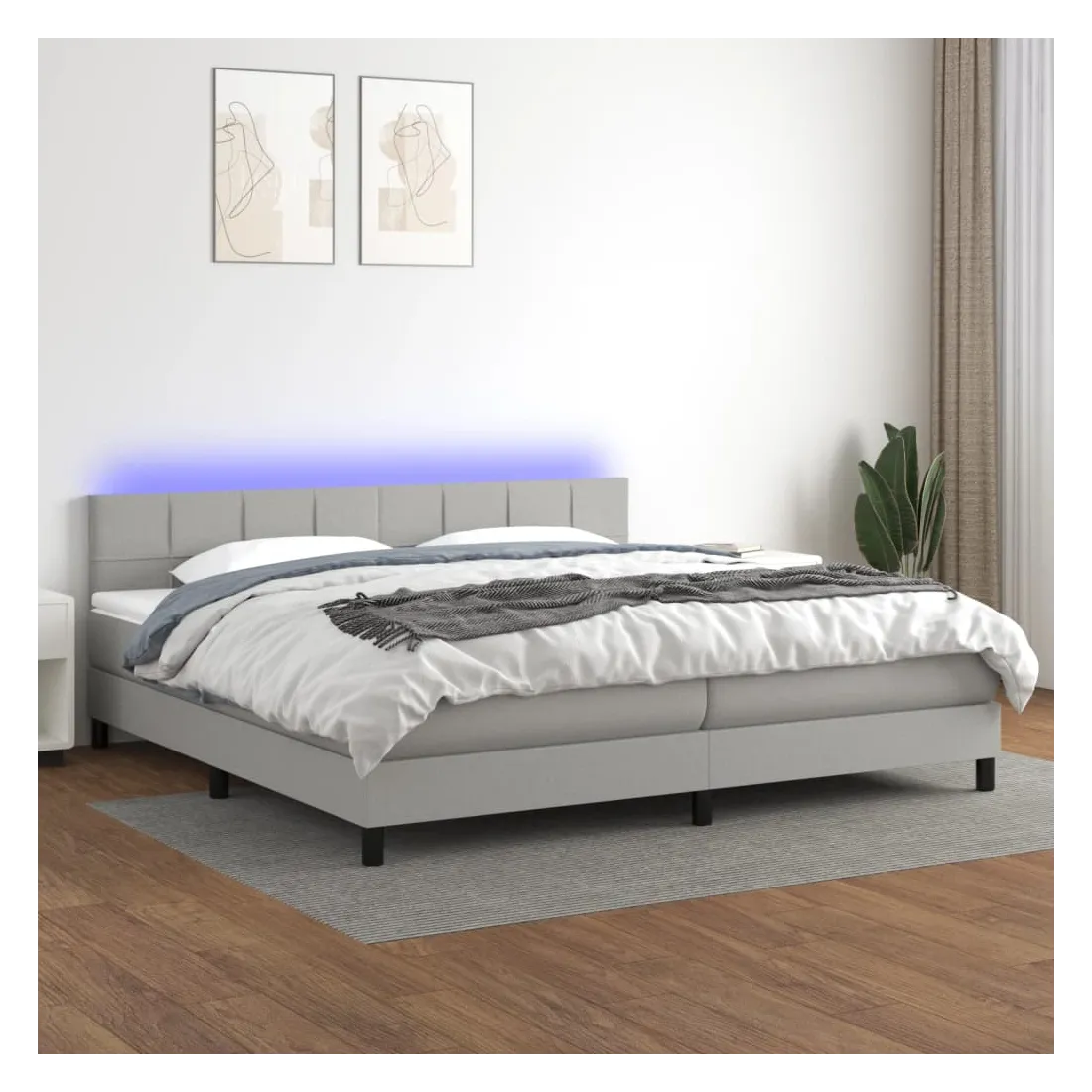 Utilisez ce sommier tapissier avec matelas et LED pour profiter d'un sommeil réparateur ! C'est le point central de votre chambre à coucher. Tissu durable : le tissu présente un aspect simple et épuré, et il est respirant et durable. Tête de lit pratique : la tête de lit est réglable en hauteur selon vos préférences. La tête de lit vous offre un excellent soutien du dos lorsque vous êtes assis dans votre lit pour lire ou regarder la télévision. Bande LED colorée : apportez de l'éclairage dans l'obscurité avec des lumières LED colorées ! Matelas à ressorts ensachés : le ressort ensaché individuel intégré est connu pour sa très haute qualité tout en assurant un haut niveau de durabilité et d'adaptabilité. Il peut absorber efficacement le bruit et les chocs causés par les sauts et les rot