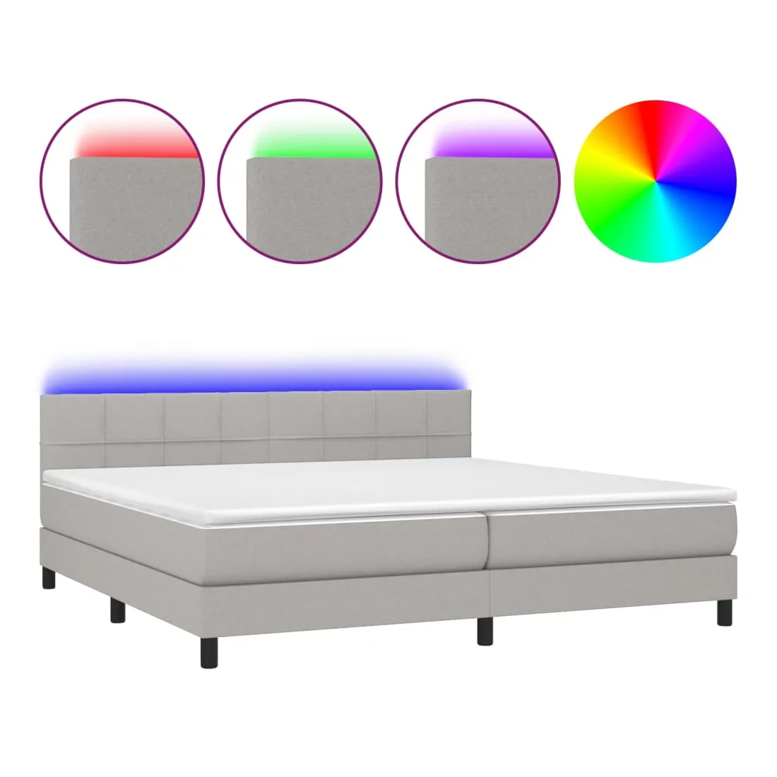Sommier à lattes de lit matelas LED Gris clair 200x200 cm Tissu