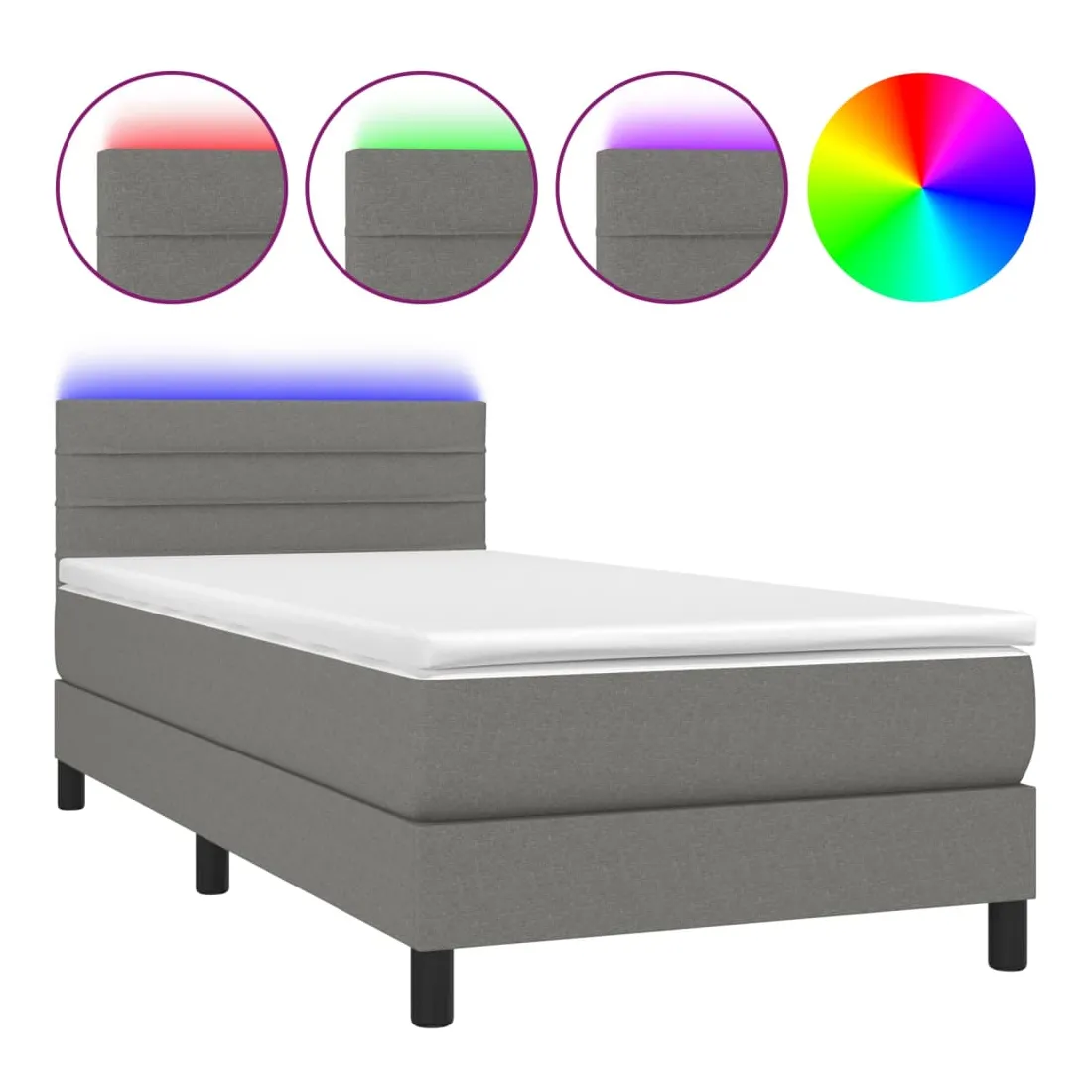 Utilisez ce sommier tapissier avec matelas et LED pour profiter d'un sommeil réparateur ! C'est le point central de votre chambre à coucher. Tissu durable : le tissu présente un aspect simple et épuré, et il est respirant et durable.Tête de lit pratique : la tête de lit est réglable en hauteur selon vos préférences. La tête de lit vous offre un excellent soutien du dos lorsque vous êtes assis dans votre lit pour lire ou regarder la télévision.Bande LED colorée : apportez de l'éclairage dans l'obscurité avec des lumières LED colorées !Matelas à ressorts ensachés : le ressort ensaché individuel intégré est connu pour sa très haute qualité tout en assurant un haut niveau de durabilité et d'adaptabilité. Il peut absorber efficacement le bruit et les chocs causés par les sauts et les rotations.Protège-matelas doux pour la peau : le protège-matelas est recouvert d'un tissu résistant et doux pour la peau, ce qui le rend souple et confortable. Remarque :Pour des raisons d'hygiène, le matelas ne peut pas être retourné si l'emballage est retiré ou ouvert.Chaque produit est livré avec un manuel de montage dans la boîte pour un montage facile.Seule la partie avec un symbole de ciseaux peut être coupée et seule la partie avec l'USB continuera à fonctionner comme avant.Ce produit est doté d'un connecteur USB, mais la source d'alimentation certifiée de USB 5V n'est pas incluse.