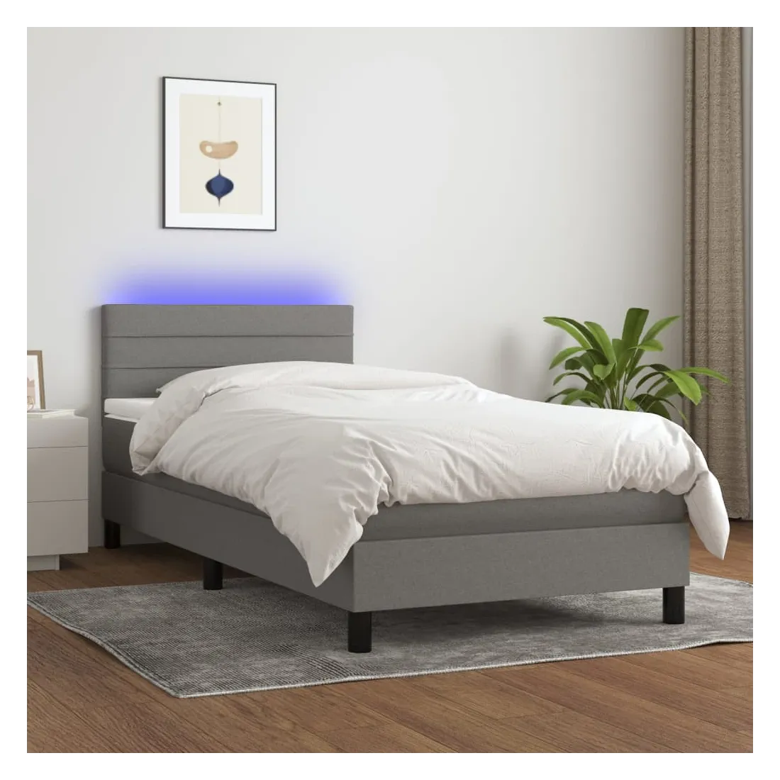 Sommier à lattes de lit et matelas et LED Gris foncé 100x200 cm