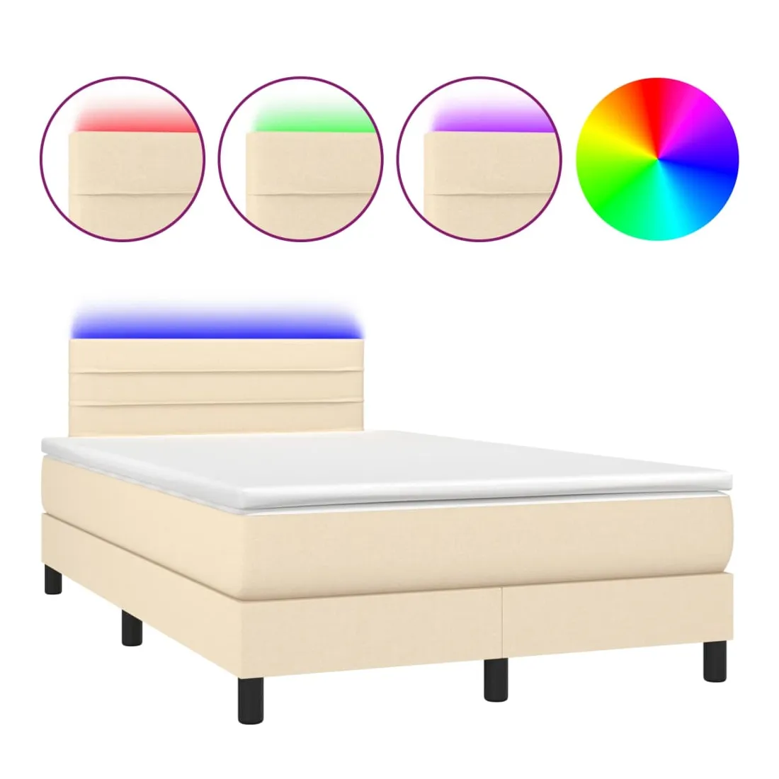 Sommier à lattes de lit avec matelas LED Crème 120x200 cm Tissu