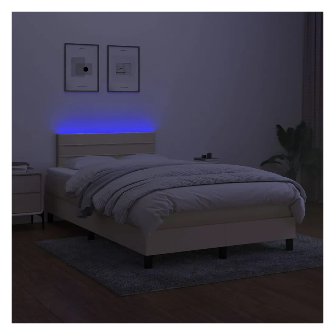 Utilisez ce sommier tapissier avec matelas et LED pour profiter d'un sommeil réparateur ! C'est le point central de votre chambre à coucher. Tissu durable : le tissu présente un aspect simple et épuré, et il est respirant et durable.Tête de lit pratique : la tête de lit est réglable en hauteur selon vos préférences. La tête de lit vous offre un excellent soutien du dos lorsque vous êtes assis dans votre lit pour lire ou regarder la télévision.Bande LED colorée : apportez de l'éclairage dans l'obscurité avec des lumières LED colorées !Matelas à ressorts ensachés : le ressort ensaché individuel intégré est connu pour sa très haute qualité tout en assurant un haut niveau de durabilité et d'adaptabilité. Il peut absorber efficacement le bruit et les chocs causés par les sauts et les rotations.Protège-matelas doux pour la peau : le protège-matelas est recouvert d'un tissu résistant et doux pour la peau, ce qui le rend souple et confortable. Remarque :Pour des raisons d'hygiène, le matelas ne peut pas être retourné si l'emballage est retiré ou ouvert.Chaque produit est livré avec un manuel de montage dans la boîte pour un montage facile.Seule la partie avec un symbole de ciseaux peut être coupée et seule la partie avec l'USB continuera à fonctionner comme avant.Ce produit est doté d'un connecteur USB, mais la source d'alimentation certifiée de USB 5V n'est pas incluse.