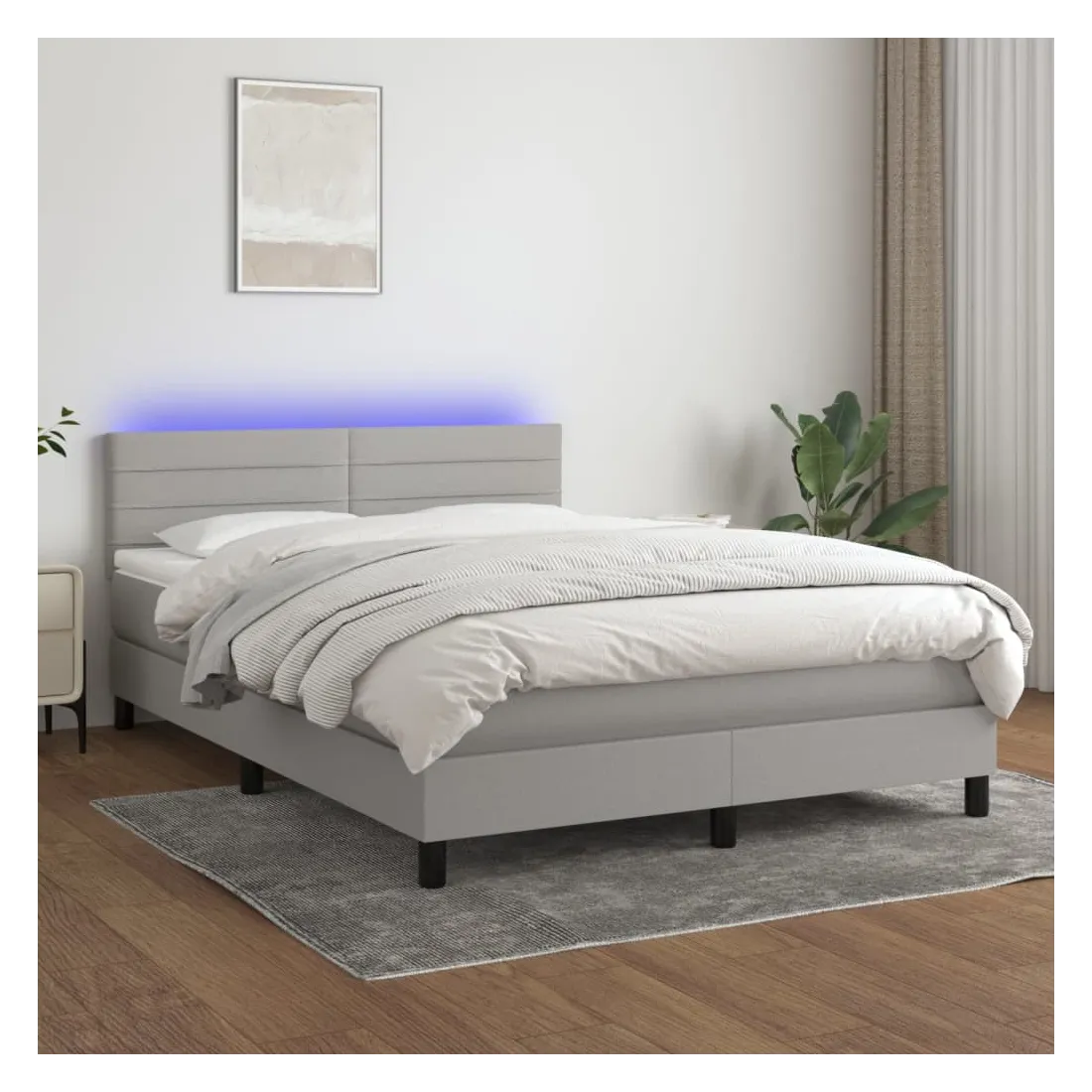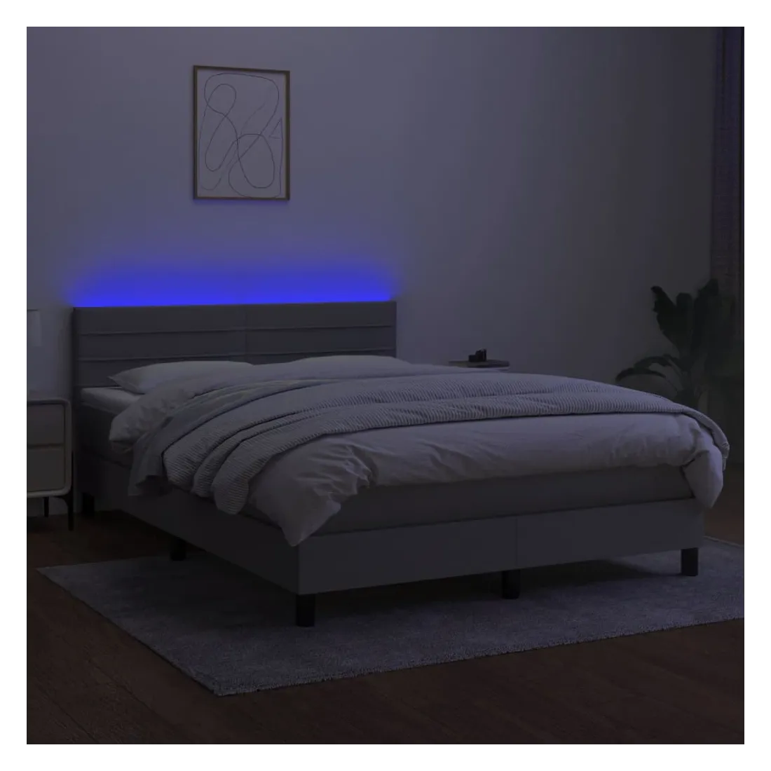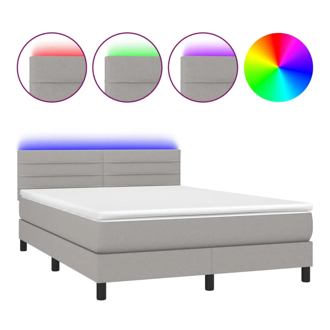 Utilisez ce sommier tapissier avec matelas et LED pour profiter d'un sommeil réparateur ! C'est le point central de votre chambre à coucher. Tissu durable : le tissu présente un aspect simple et épuré, et il est respirant et durable.Tête de lit pratique : la tête de lit est réglable en hauteur selon vos préférences. La tête de lit vous offre un excellent soutien du dos lorsque vous êtes assis dans votre lit pour lire ou regarder la télévision.Bande LED colorée : apportez de l'éclairage dans l'obscurité avec des lumières LED colorées !Matelas à ressorts ensachés : le ressort ensaché individuel intégré est connu pour sa très haute qualité tout en assurant un haut niveau de durabilité et d'adaptabilité. Il peut absorber efficacement le bruit et les chocs causés par les sauts et les rotations.Protège-matelas doux pour la peau : le protège-matelas est recouvert d'un tissu résistant et doux pour la peau, ce qui le rend souple et confortable. Remarque :Pour des raisons d'hygiène, le matelas ne peut pas être retourné si l'emballage est retiré ou ouvert.Chaque produit est livré avec un manuel de montage dans la boîte pour un montage facile.Seule la partie avec un symbole de ciseaux peut être coupée et seule la partie avec l'USB continuera à fonctionner comme avant.Ce produit est doté d'un connecteur USB, mais la source d'alimentation certifiée de USB 5V n'est pas incluse.