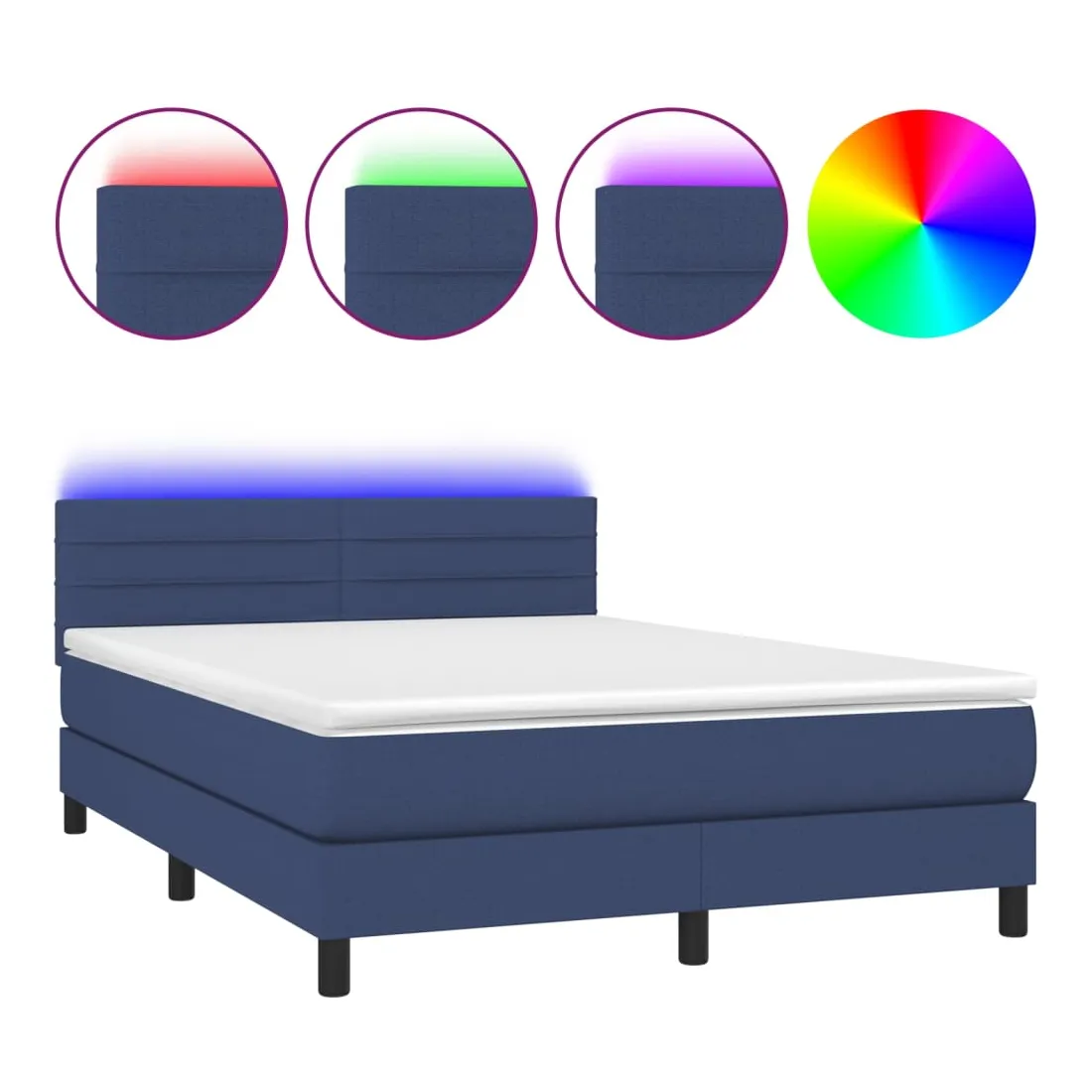 Sommier à lattes de lit avec matelas LED Bleu 140x200 cm Tissu