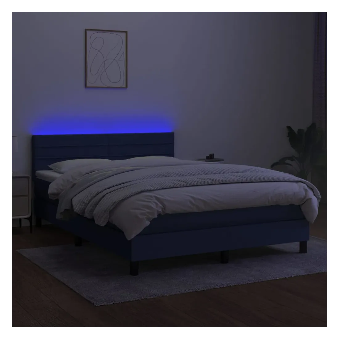 Utilisez ce sommier tapissier avec matelas et LED pour profiter d'un sommeil réparateur ! C'est le point central de votre chambre à coucher. Tissu durable : le tissu présente un aspect simple et épuré, et il est respirant et durable.Tête de lit pratique : la tête de lit est réglable en hauteur selon vos préférences. La tête de lit vous offre un excellent soutien du dos lorsque vous êtes assis dans votre lit pour lire ou regarder la télévision.Bande LED colorée : apportez de l'éclairage dans l'obscurité avec des lumières LED colorées !Matelas à ressorts ensachés : le ressort ensaché individuel intégré est connu pour sa très haute qualité tout en assurant un haut niveau de durabilité et d'adaptabilité. Il peut absorber efficacement le bruit et les chocs causés par les sauts et les rotations.Protège-matelas doux pour la peau : le protège-matelas est recouvert d'un tissu résistant et doux pour la peau, ce qui le rend souple et confortable. Remarque :Pour des raisons d'hygiène, le matelas ne peut pas être retourné si l'emballage est retiré ou ouvert.Chaque produit est livré avec un manuel de montage dans la boîte pour un montage facile.Seule la partie avec un symbole de ciseaux peut être coupée et seule la partie avec l'USB continuera à fonctionner comme avant.Ce produit est doté d'un connecteur USB, mais la source d'alimentation certifiée de USB 5V n'est pas incluse.