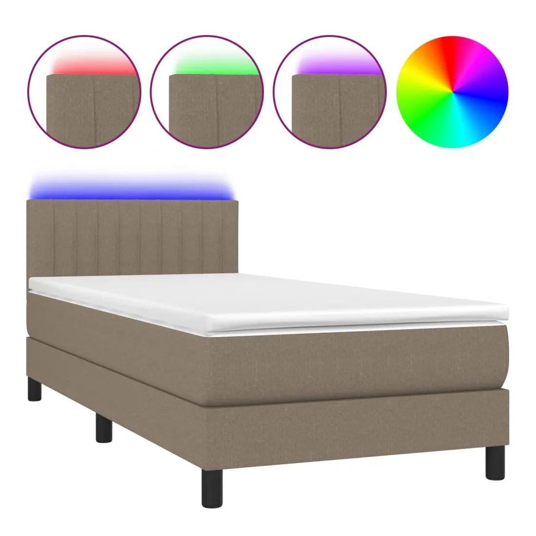 Sommier à lattes de lit avec matelas LED Taupe 80x200 cm Tissu