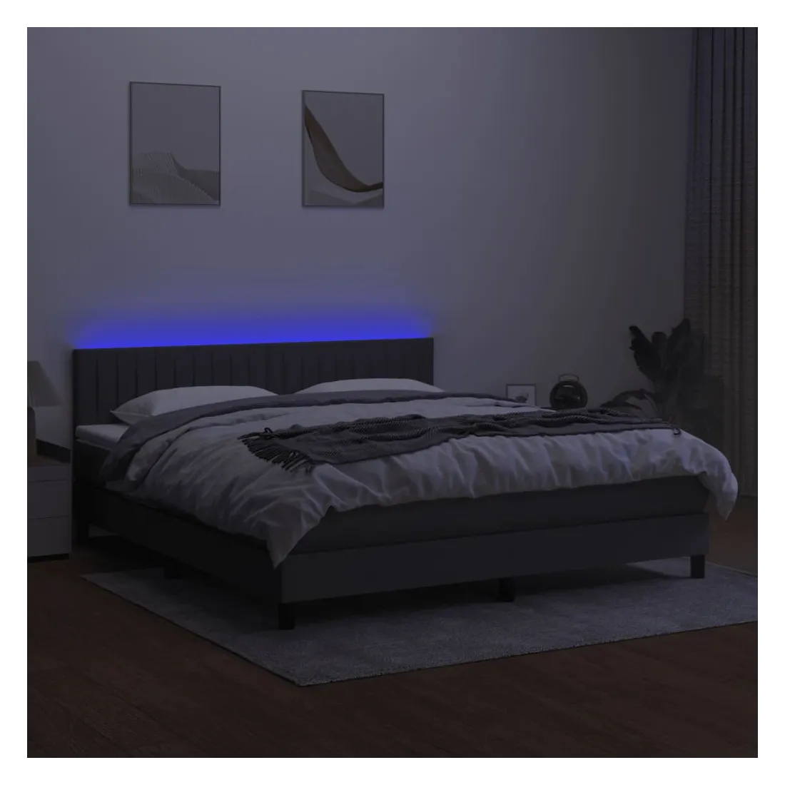 Utilisez ce sommier tapissier avec matelas et LED pour profiter d'un sommeil réparateur ! C'est le point central de votre chambre à coucher. Tissu durable : le tissu présente un aspect simple et épuré, et il est respirant et durable.Tête de lit pratique : la tête de lit est réglable en hauteur selon vos préférences. La tête de lit vous offre un excellent soutien du dos lorsque vous êtes assis dans votre lit pour lire ou regarder la télévision.Bande LED colorée : apportez de l'éclairage dans l'obscurité avec des lumières LED colorées !Matelas à ressorts ensachés : le ressort ensaché individuel intégré est connu pour sa très haute qualité tout en assurant un haut niveau de durabilité et d'adaptabilité. Il peut absorber efficacement le bruit et les chocs causés par les sauts et les rotations.Protège-matelas doux pour la peau : le protège-matelas est recouvert d'un tissu résistant et doux pour la peau, ce qui le rend souple et confortable. Remarque :Pour des raisons d'hygiène, le matelas ne peut pas être retourné si l'emballage est retiré ou ouvert.Chaque produit est livré avec un manuel de montage dans la boîte pour un montage facile.Seule la partie avec un symbole de ciseaux peut être coupée et seule la partie avec l'USB continuera à fonctionner comme avant.Ce produit est doté d'un connecteur USB, mais la source d'alimentation certifiée de USB 5V n'est pas incluse.