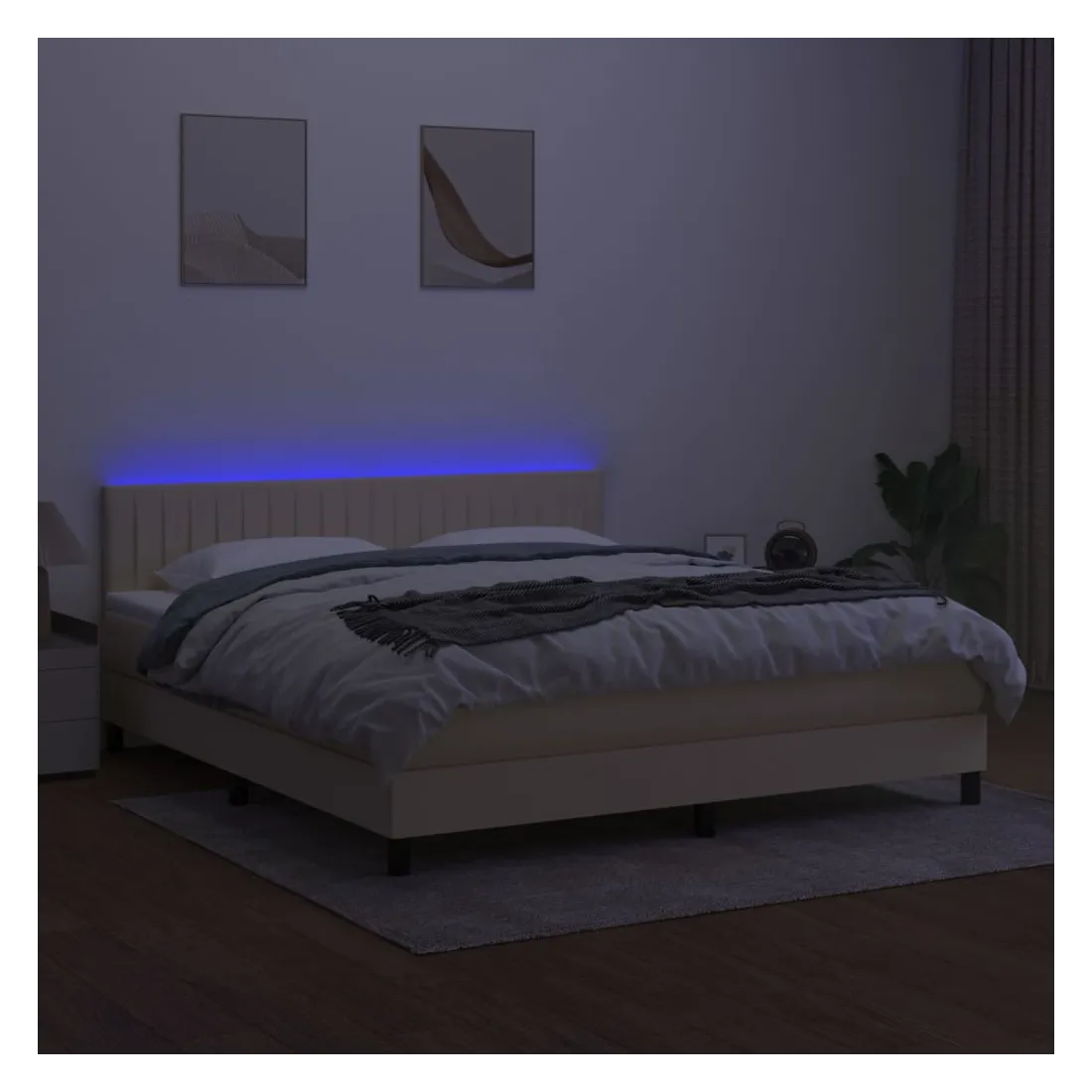 Utilisez ce sommier tapissier avec matelas et LED pour profiter d'un sommeil réparateur ! C'est le point central de votre chambre à coucher. Tissu durable : le tissu présente un aspect simple et épuré, et il est respirant et durable.Tête de lit pratique : la tête de lit est réglable en hauteur selon vos préférences. La tête de lit vous offre un excellent soutien du dos lorsque vous êtes assis dans votre lit pour lire ou regarder la télévision.Bande LED colorée : apportez de l'éclairage dans l'obscurité avec des lumières LED colorées !Matelas à ressorts ensachés : le ressort ensaché individuel intégré est connu pour sa très haute qualité tout en assurant un haut niveau de durabilité et d'adaptabilité. Il peut absorber efficacement le bruit et les chocs causés par les sauts et les rotations.Protège-matelas doux pour la peau : le protège-matelas est recouvert d'un tissu résistant et doux pour la peau, ce qui le rend souple et confortable. Remarque :Pour des raisons d'hygiène, le matelas ne peut pas être retourné si l'emballage est retiré ou ouvert.Chaque produit est livré avec un manuel de montage dans la boîte pour un montage facile.Seule la partie avec un symbole de ciseaux peut être coupée et seule la partie avec l'USB continuera à fonctionner comme avant.Ce produit est doté d'un connecteur USB, mais la source d'alimentation certifiée de USB 5V n'est pas incluse.