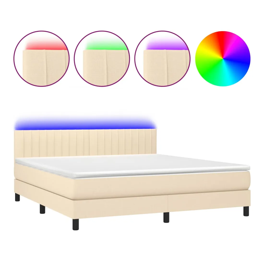 Sommier à lattes de lit avec matelas LED Crème 180x200 cm Tissu