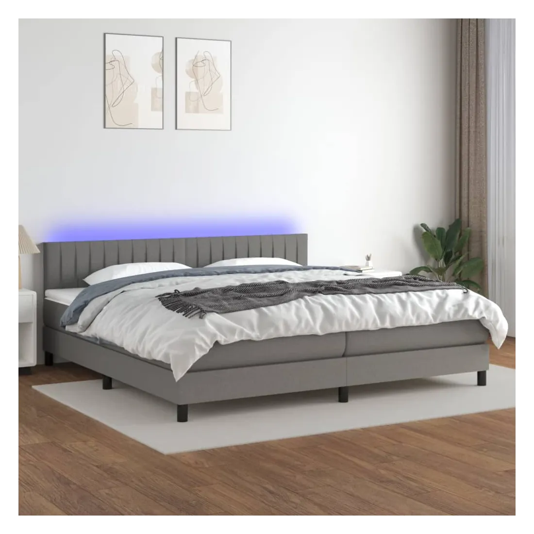 Utilisez ce sommier tapissier avec matelas et LED pour profiter d'un sommeil réparateur ! C'est le point central de votre chambre à coucher. Tissu durable : le tissu présente un aspect simple et épuré, et il est respirant et durable. Tête de lit pratique : la tête de lit est réglable en hauteur selon vos préférences. La tête de lit vous offre un excellent soutien du dos lorsque vous êtes assis dans votre lit pour lire ou regarder la télévision. Bande LED colorée : apportez de l'éclairage dans l'obscurité avec des lumières LED colorées ! Matelas à ressorts ensachés : le ressort ensaché individuel intégré est connu pour sa très haute qualité tout en assurant un haut niveau de durabilité et d'adaptabilité. Il peut absorber efficacement le bruit et les chocs causés par les sauts et les rot