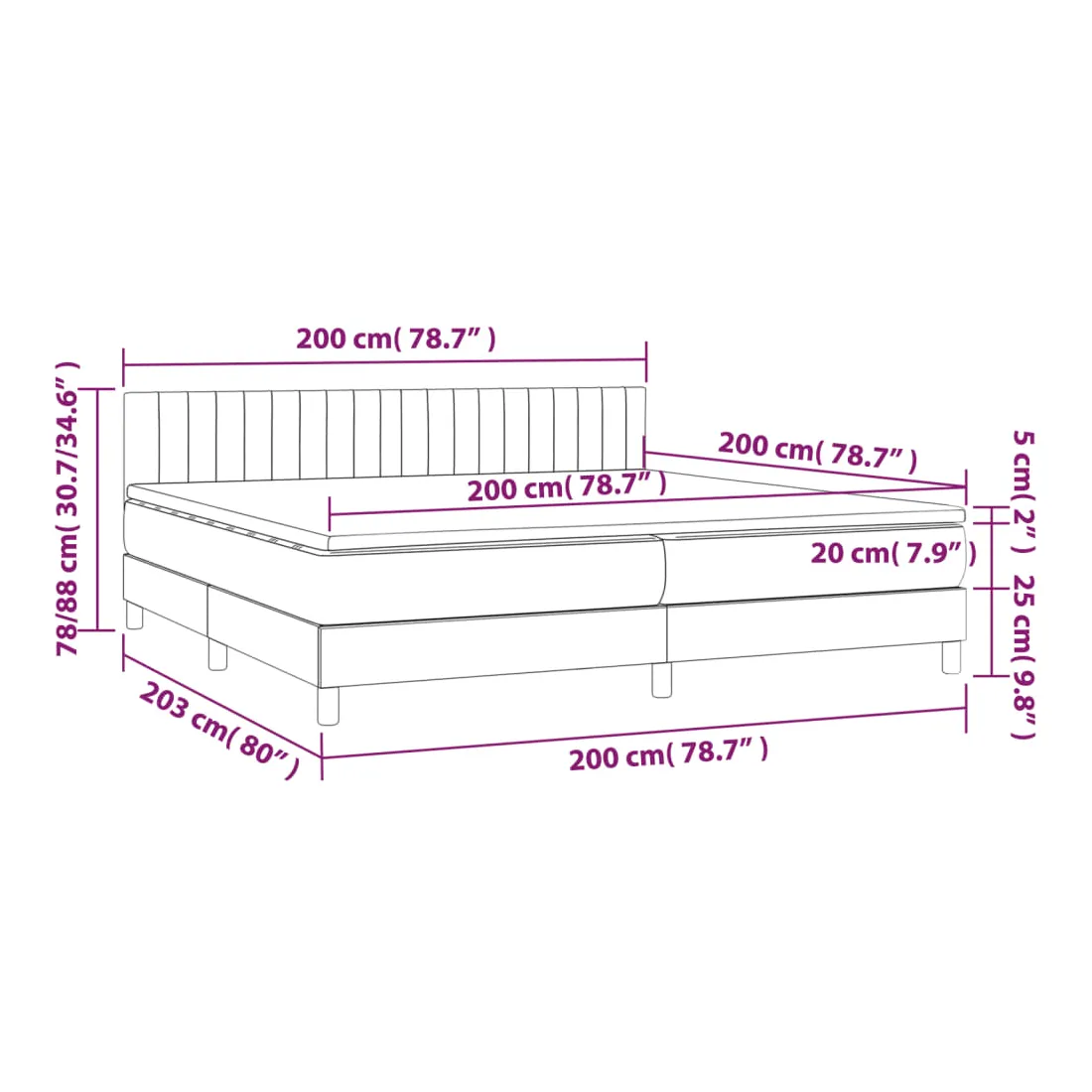 Sommier à lattes de lit et matelas et LED Gris foncé 200x200 cm