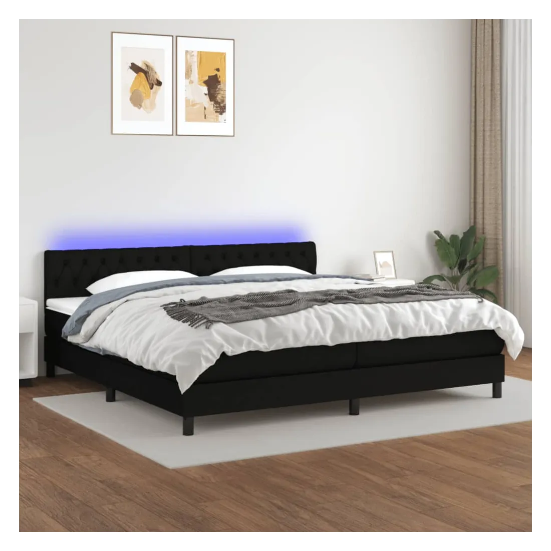 Utilisez ce sommier tapissier avec matelas et LED pour profiter d'un sommeil réparateur ! C'est le point central de votre chambre à coucher. Tissu durable : le tissu présente un aspect simple et épuré, et il est respirant et durable.Tête de lit pratique : la tête de lit est réglable en hauteur selon vos préférences. La tête de lit vous offre un excellent soutien du dos lorsque vous êtes assis dans votre lit pour lire ou regarder la télévision.Bande LED colorée : apportez de l'éclairage dans l'obscurité avec des lumières LED colorées !Matelas à ressorts ensachés : le ressort ensaché individuel intégré est connu pour sa très haute qualité tout en assurant un haut niveau de durabilité et d'adaptabilité. Il peut absorber efficacement le bruit et les chocs causés par les sauts et les rotations.Protège-matelas doux pour la peau : le protège-matelas est recouvert d'un tissu résistant et doux pour la peau, ce qui le rend souple et confortable. Remarque :Pour des raisons d'hygiène, le matelas ne peut pas être retourné si l'emballage est retiré ou ouvert.Chaque produit est livré avec un manuel de montage dans la boîte pour un montage facile.Seule la partie avec un symbole de ciseaux peut être coupée et seule la partie avec l'USB continuera à fonctionner comme avant.Ce produit est doté d'un connecteur USB, mais la source d'alimentation certifiée de USB 5V n'est pas incluse.
