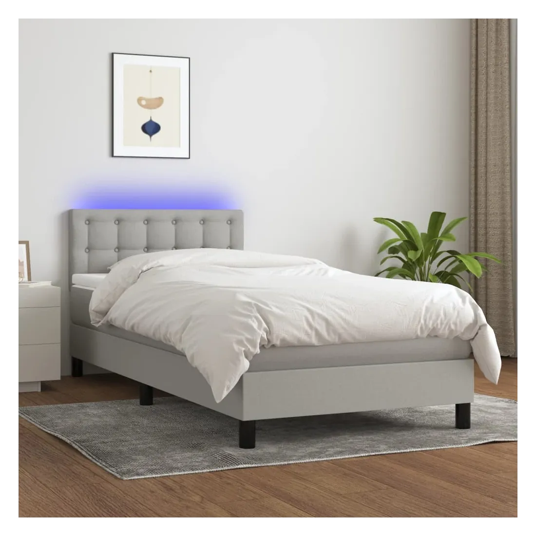 Utilisez ce sommier tapissier avec matelas et LED pour profiter d'un sommeil réparateur ! C'est le point central de votre chambre à coucher. Tissu durable : le tissu présente un aspect simple et épuré, et il est respirant et durable.Tête de lit pratique : la tête de lit est réglable en hauteur selon vos préférences. La tête de lit vous offre un excellent soutien du dos lorsque vous êtes assis dans votre lit pour lire ou regarder la télévision.Bande LED colorée : apportez de l'éclairage dans l'obscurité avec des lumières LED colorées !Matelas à ressorts ensachés : le ressort ensaché individuel intégré est connu pour sa très haute qualité tout en assurant un haut niveau de durabilité et d'adaptabilité. Il peut absorber efficacement le bruit et les chocs causés par les sauts et les rotations.Protège-matelas doux pour la peau : le protège-matelas est recouvert d'un tissu résistant et doux pour la peau, ce qui le rend souple et confortable. Remarque :Pour des raisons d'hygiène, le matelas ne peut pas être retourné si l'emballage est retiré ou ouvert.Chaque produit est livré avec un manuel de montage dans la boîte pour un montage facile.Seule la partie avec un symbole de ciseaux peut être coupée et seule la partie avec l'USB continuera à fonctionner comme avant.Ce produit est doté d'un connecteur USB, mais la source d'alimentation certifiée de USB 5V n'est pas incluse.