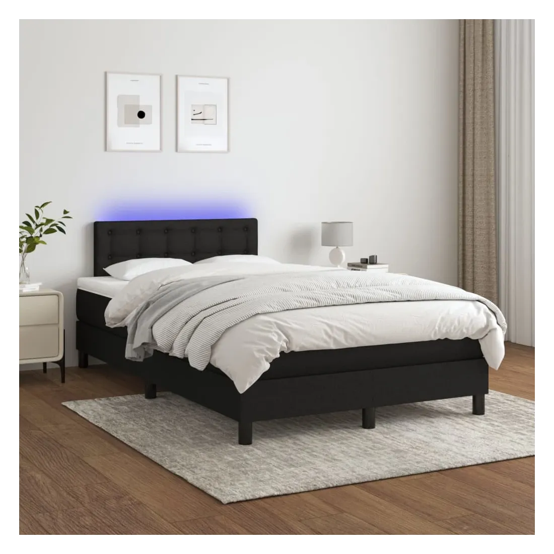 Sommier à lattes de lit avec matelas LED Noir 120x200 cm Tissu