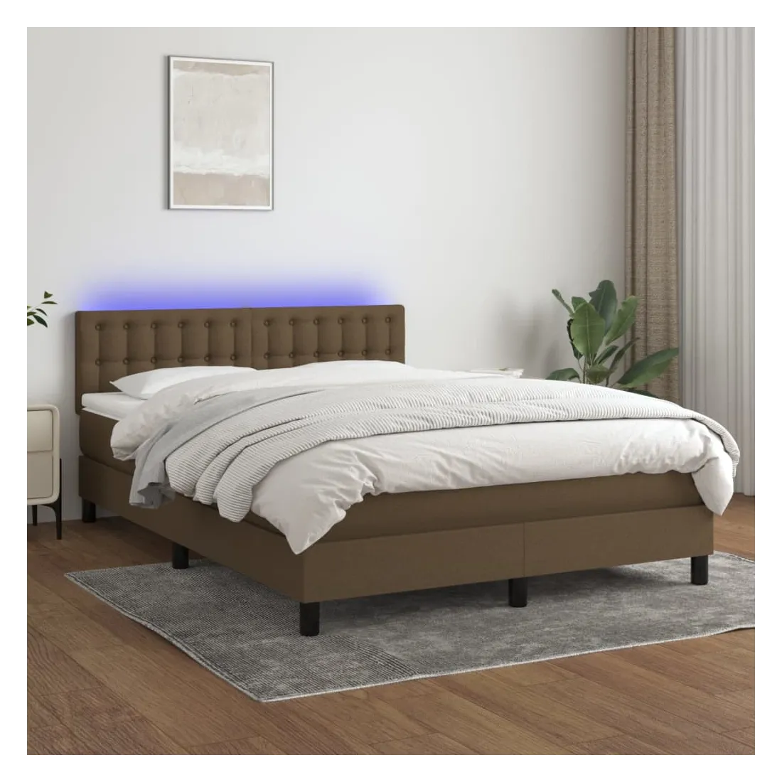 Utilisez ce sommier tapissier avec matelas et LED pour profiter d'un sommeil réparateur ! C'est le point central de votre chambre à coucher. Tissu durable : le tissu présente un aspect simple et épuré, et il est respirant et durable.Tête de lit pratique : la tête de lit est réglable en hauteur selon vos préférences. La tête de lit vous offre un excellent soutien du dos lorsque vous êtes assis dans votre lit pour lire ou regarder la télévision.Bande LED colorée : apportez de l'éclairage dans l'obscurité avec des lumières LED colorées !Matelas à ressorts ensachés : le ressort ensaché individuel intégré est connu pour sa très haute qualité tout en assurant un haut niveau de durabilité et d'adaptabilité. Il peut absorber efficacement le bruit et les chocs causés par les sauts et les rotations.Protège-matelas doux pour la peau : le protège-matelas est recouvert d'un tissu résistant et doux pour la peau, ce qui le rend souple et confortable. Remarque :Pour des raisons d'hygiène, le matelas ne peut pas être retourné si l'emballage est retiré ou ouvert.Chaque produit est livré avec un manuel de montage dans la boîte pour un montage facile.Seule la partie avec un symbole de ciseaux peut être coupée et seule la partie avec l'USB continuera à fonctionner comme avant.Ce produit est doté d'un connecteur USB, mais la source d'alimentation certifiée de USB 5V n'est pas incluse.