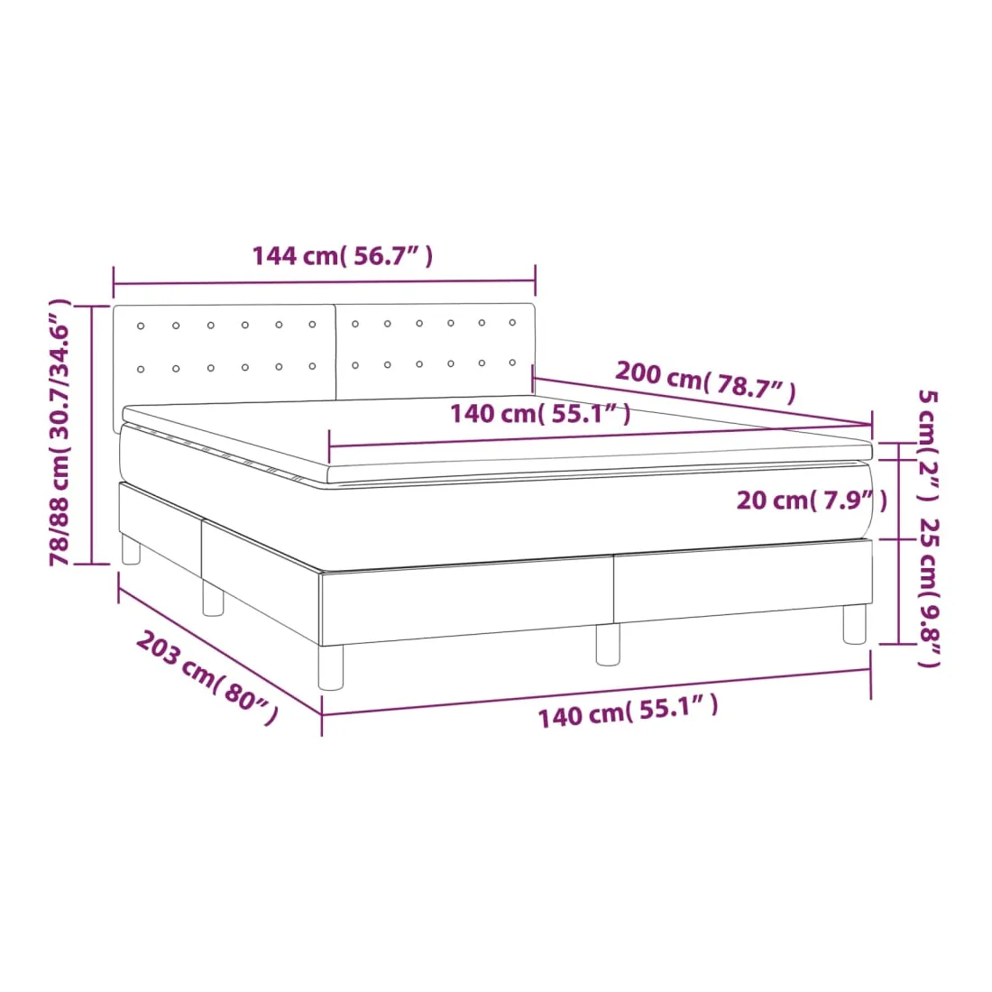 • Dimensions : 140 x 200 x 20 cm (l x L x H)