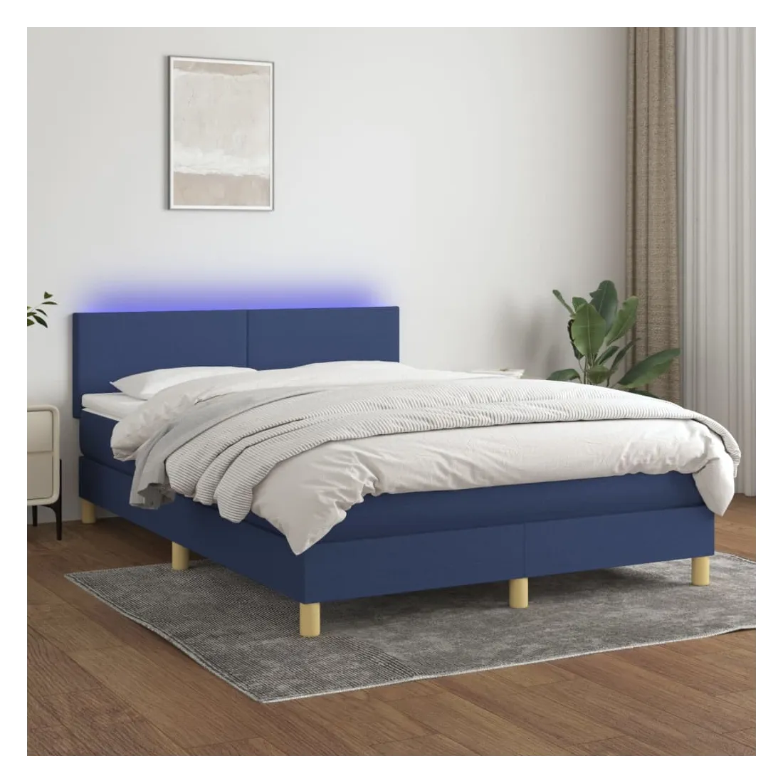 Utilisez ce sommier tapissier avec matelas et LED pour profiter d'un sommeil réparateur ! C'est le point central de votre chambre à coucher. Tissu durable : le tissu présente un aspect simple et épuré, et il est respirant et durable. Tête de lit pratique : la tête de lit est réglable en hauteur selon vos préférences. La tête de lit vous offre un excellent soutien du dos lorsque vous êtes assis dans votre lit pour lire ou regarder la télévision. Bande LED colorée : apportez de l'éclairage dans l'obscurité avec des lumières LED colorées ! Matelas à ressorts ensachés : le ressort ensaché individuel intégré est connu pour sa très haute qualité tout en assurant un haut niveau de durabilité et d'adaptabilité. Il peut absorber efficacement le bruit et les chocs causés par les sauts et les rot