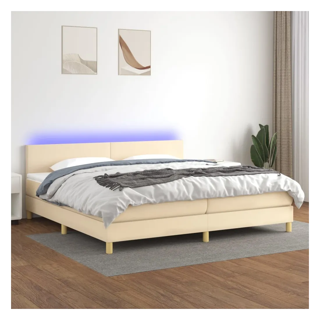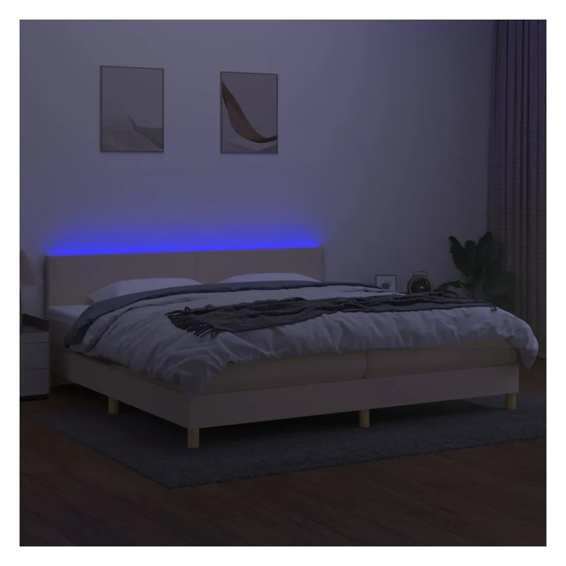 Sommier à lattes de lit et matelas et LED Crème 200x200cm Tissu