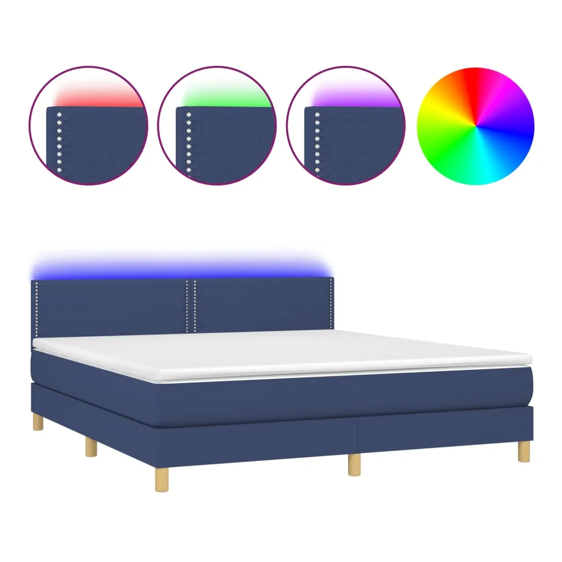Sommier à lattes de lit avec matelas LED Bleu 180x200 cm Tissu