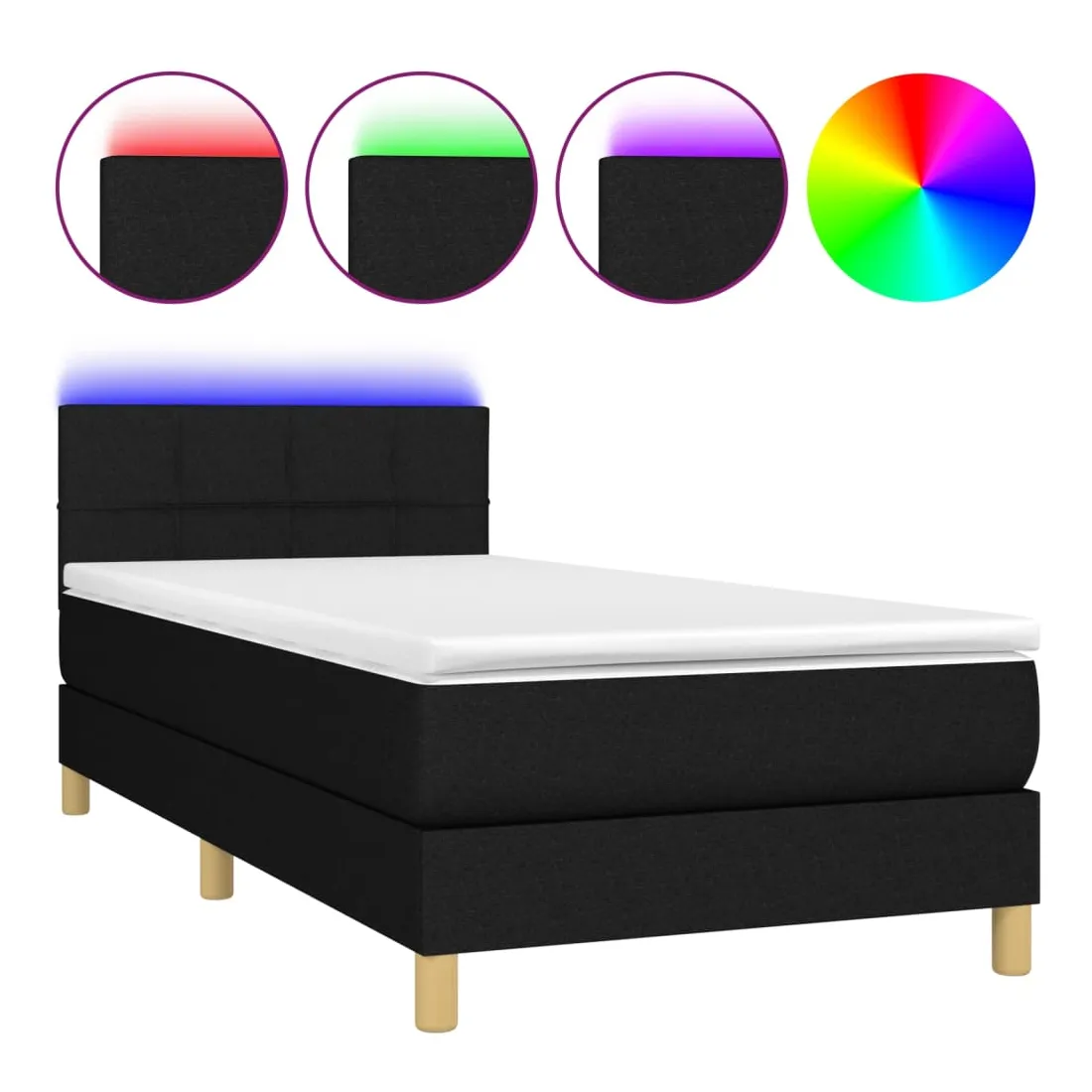 Sommier à lattes de lit avec matelas et LED Noir 90x200cm Tissu