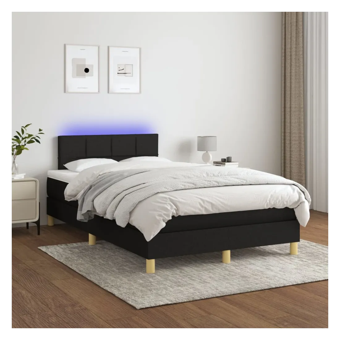 Utilisez ce sommier tapissier avec matelas et LED pour profiter d'un sommeil réparateur ! C'est le point central de votre chambre à coucher. Tissu durable : le tissu présente un aspect simple et épuré, et il est respirant et durable.Tête de lit pratique : la tête de lit est réglable en hauteur selon vos préférences. La tête de lit vous offre un excellent soutien du dos lorsque vous êtes assis dans votre lit pour lire ou regarder la télévision.Bande LED colorée : apportez de l'éclairage dans l'obscurité avec des lumières LED colorées !Matelas à ressorts ensachés : le ressort ensaché individuel intégré est connu pour sa très haute qualité tout en assurant un haut niveau de durabilité et d'adaptabilité. Il peut absorber efficacement le bruit et les chocs causés par les sauts et les rotations.Protège-matelas doux pour la peau : le protège-matelas est recouvert d'un tissu résistant et doux pour la peau, ce qui le rend souple et confortable. Remarque :Pour des raisons d'hygiène, le matelas ne peut pas être retourné si l'emballage est retiré ou ouvert.Chaque produit est livré avec un manuel de montage dans la boîte pour un montage facile.Seule la partie avec un symbole de ciseaux peut être coupée et seule la partie avec l'USB continuera à fonctionner comme avant.Ce produit est doté d'un connecteur USB, mais la source d'alimentation certifiée de USB 5V n'est pas incluse.