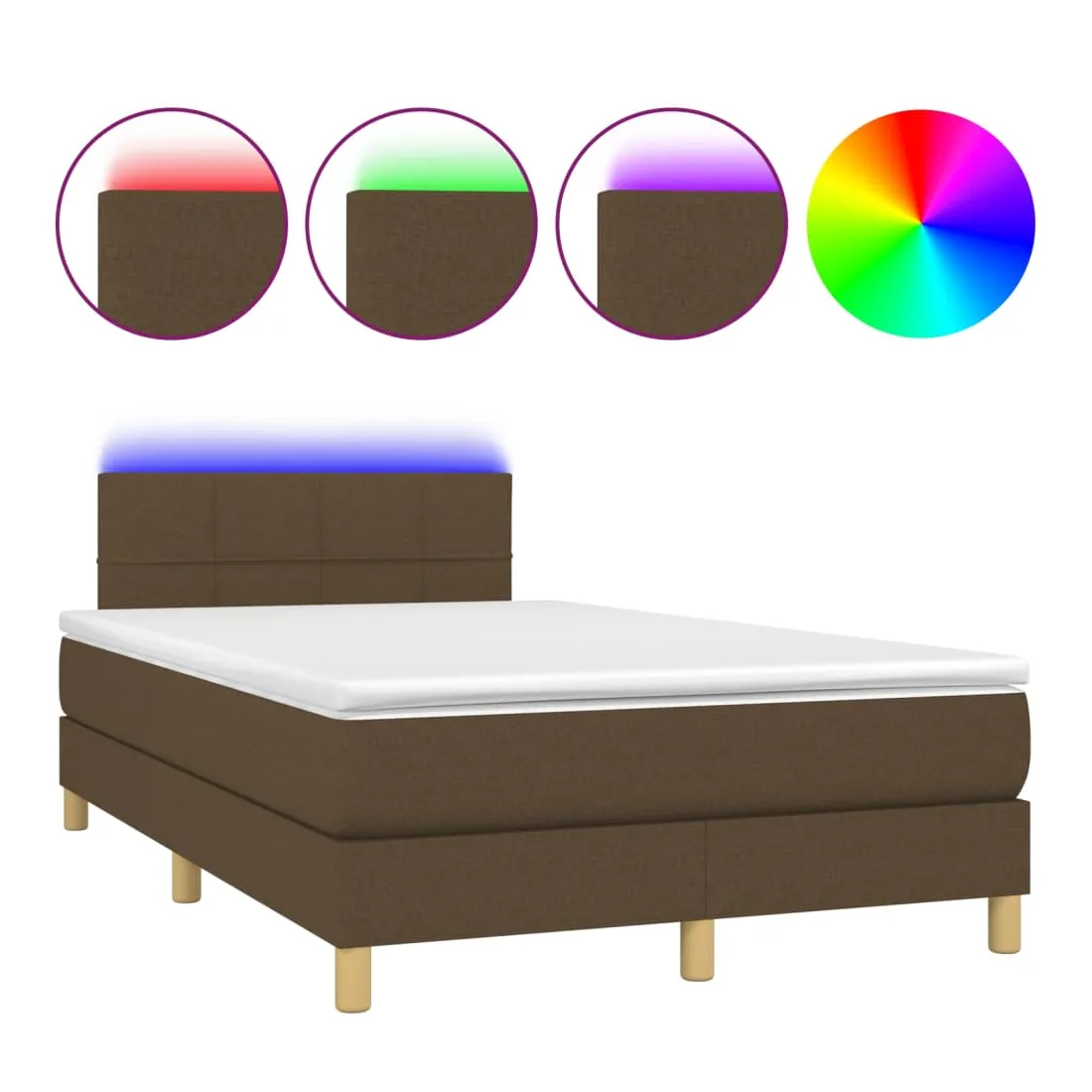 Sommier à lattes de lit matelas et LED Marron foncé 120x200 cm