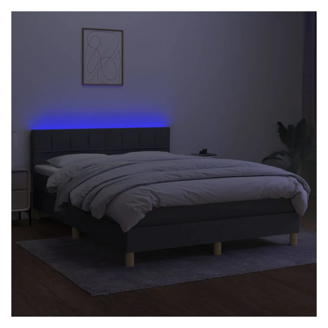 Sommier à lattes de lit et matelas et LED Gris foncé 140x200 cm