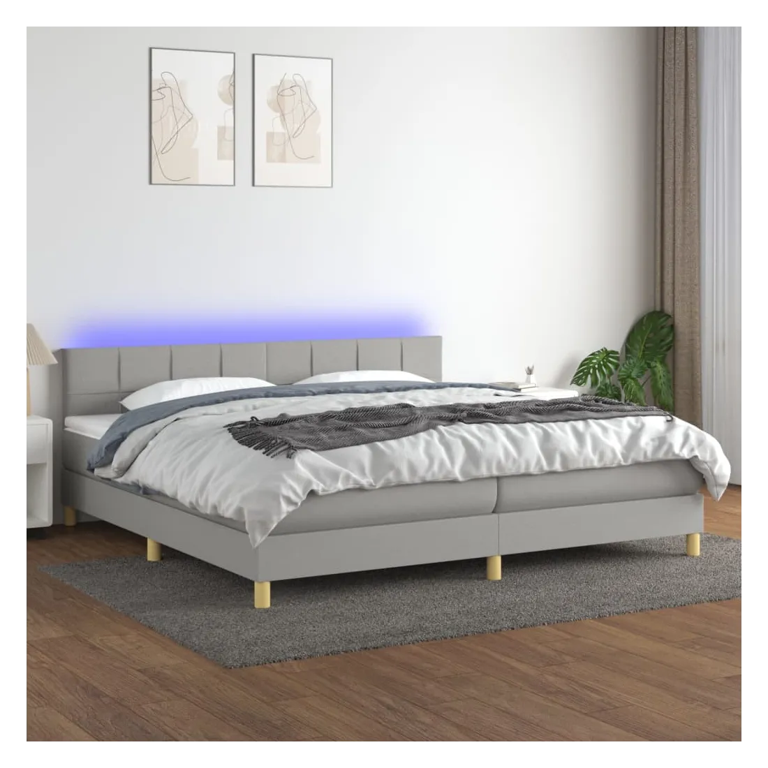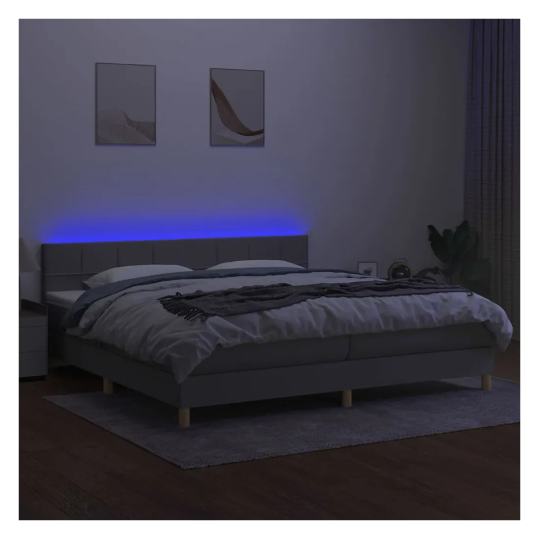 Utilisez ce sommier tapissier avec matelas et LED pour profiter d'un sommeil réparateur ! C'est le point central de votre chambre à coucher. Tissu durable : le tissu présente un aspect simple et épuré, et il est respirant et durable.Tête de lit pratique : la tête de lit est réglable en hauteur selon vos préférences. La tête de lit vous offre un excellent soutien du dos lorsque vous êtes assis dans votre lit pour lire ou regarder la télévision.Bande LED colorée : apportez de l'éclairage dans l'obscurité avec des lumières LED colorées !Matelas à ressorts ensachés : le ressort ensaché individuel intégré est connu pour sa très haute qualité tout en assurant un haut niveau de durabilité et d'adaptabilité. Il peut absorber efficacement le bruit et les chocs causés par les sauts et les rotations.Protège-matelas doux pour la peau : le protège-matelas est recouvert d'un tissu résistant et doux pour la peau, ce qui le rend souple et confortable. Remarque :Pour des raisons d'hygiène, le matelas ne peut pas être retourné si l'emballage est retiré ou ouvert.Chaque produit est livré avec un manuel de montage dans la boîte pour un montage facile.Seule la partie avec un symbole de ciseaux peut être coupée et seule la partie avec l'USB continuera à fonctionner comme avant.Ce produit est doté d'un connecteur USB, mais la source d'alimentation certifiée de USB 5V n'est pas incluse.