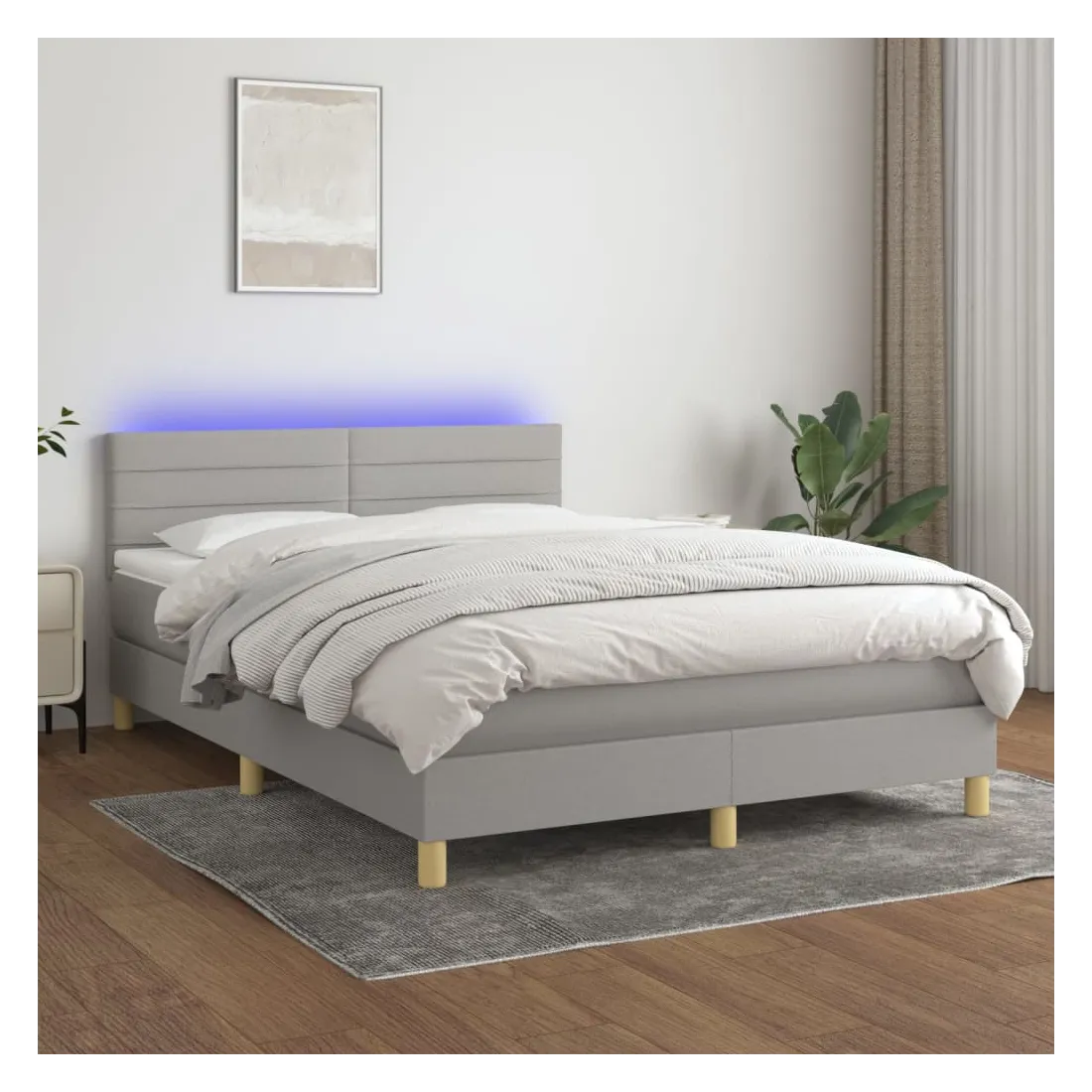 Sommier à lattes de lit et matelas et LED Gris clair 140x190 cm