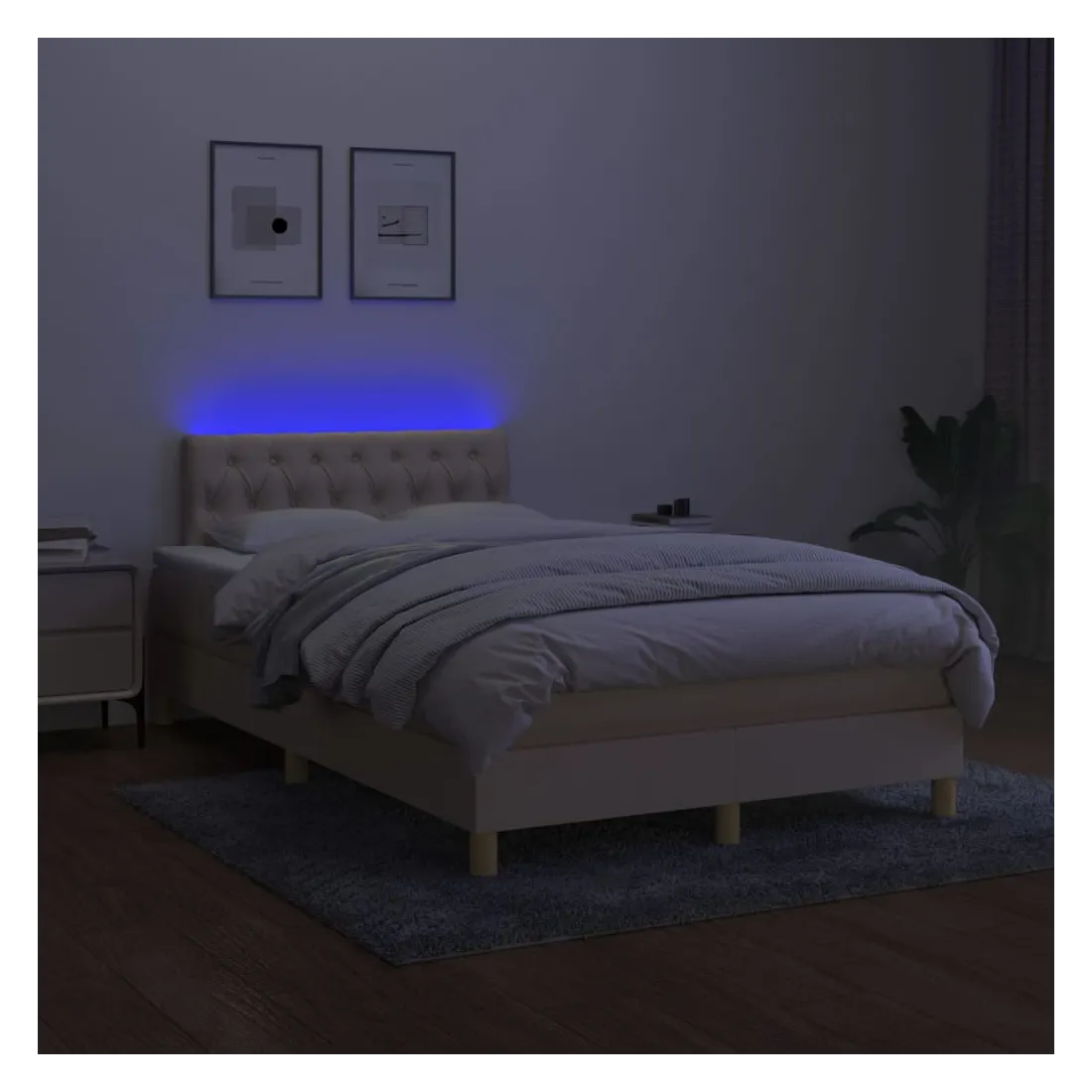 Sommier à lattes de lit avec matelas LED Crème 120x200 cm Tissu