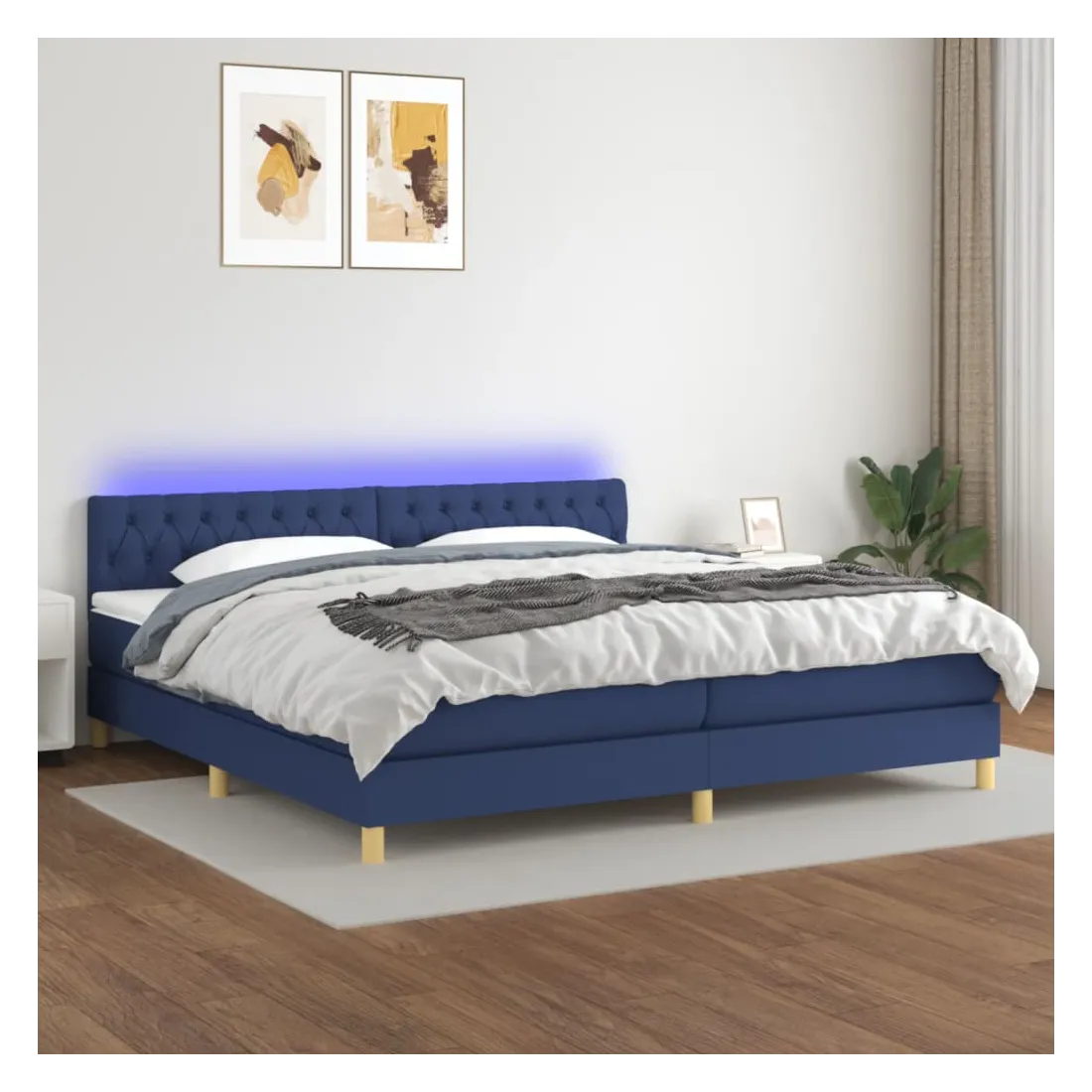 Sommier à lattes de lit et matelas et LED Bleu 200x200 cm Tissu