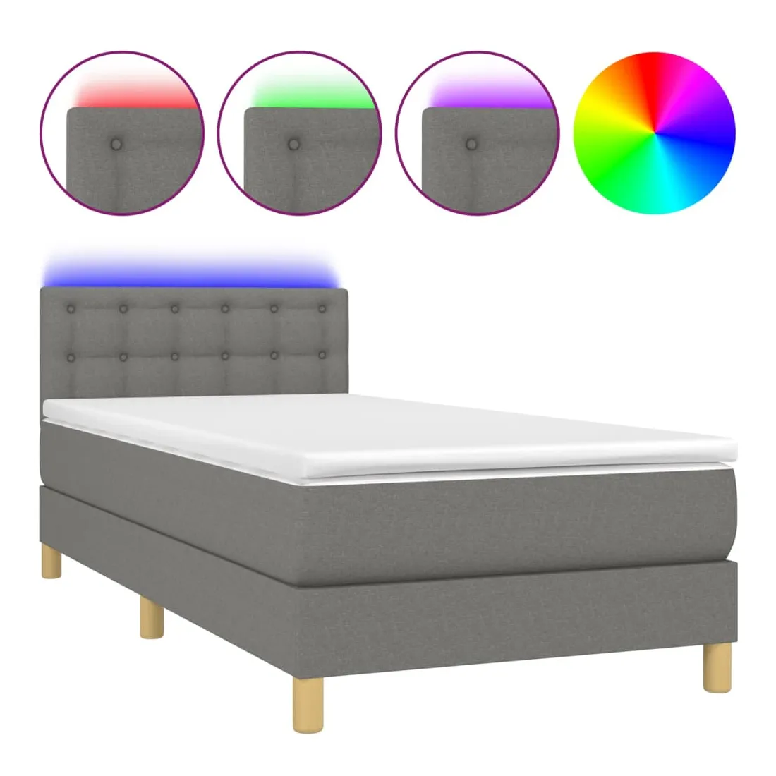 Utilisez ce sommier tapissier avec matelas et LED pour profiter d'un sommeil réparateur ! C'est le point central de votre chambre à coucher. Tissu durable : le tissu présente un aspect simple et épuré, et il est respirant et durable.Tête de lit pratique : la tête de lit est réglable en hauteur selon vos préférences. La tête de lit vous offre un excellent soutien du dos lorsque vous êtes assis dans votre lit pour lire ou regarder la télévision.Bande LED colorée : apportez de l'éclairage dans l'obscurité avec des lumières LED colorées !Matelas à ressorts ensachés : le ressort ensaché individuel intégré est connu pour sa très haute qualité tout en assurant un haut niveau de durabilité et d'adaptabilité. Il peut absorber efficacement le bruit et les chocs causés par les sauts et les rotations.Protège-matelas doux pour la peau : le protège-matelas est recouvert d'un tissu résistant et doux pour la peau, ce qui le rend souple et confortable. Remarque :Pour des raisons d'hygiène, le matelas ne peut pas être retourné si l'emballage est retiré ou ouvert.Chaque produit est livré avec un manuel de montage dans la boîte pour un montage facile.Seule la partie avec un symbole de ciseaux peut être coupée et seule la partie avec l'USB continuera à fonctionner comme avant.Ce produit est doté d'un connecteur USB, mais la source d'alimentation certifiée de USB 5V n'est pas incluse.