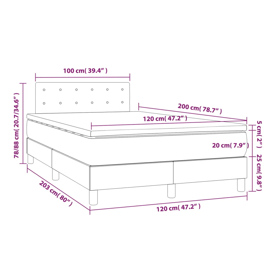 • Dimensions : 120 x 200 x 20 cm (l x L x H)
