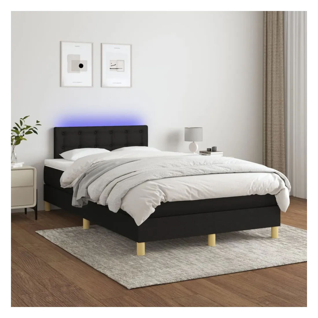 Sommier à lattes de lit avec matelas LED Noir 120x200 cm Tissu