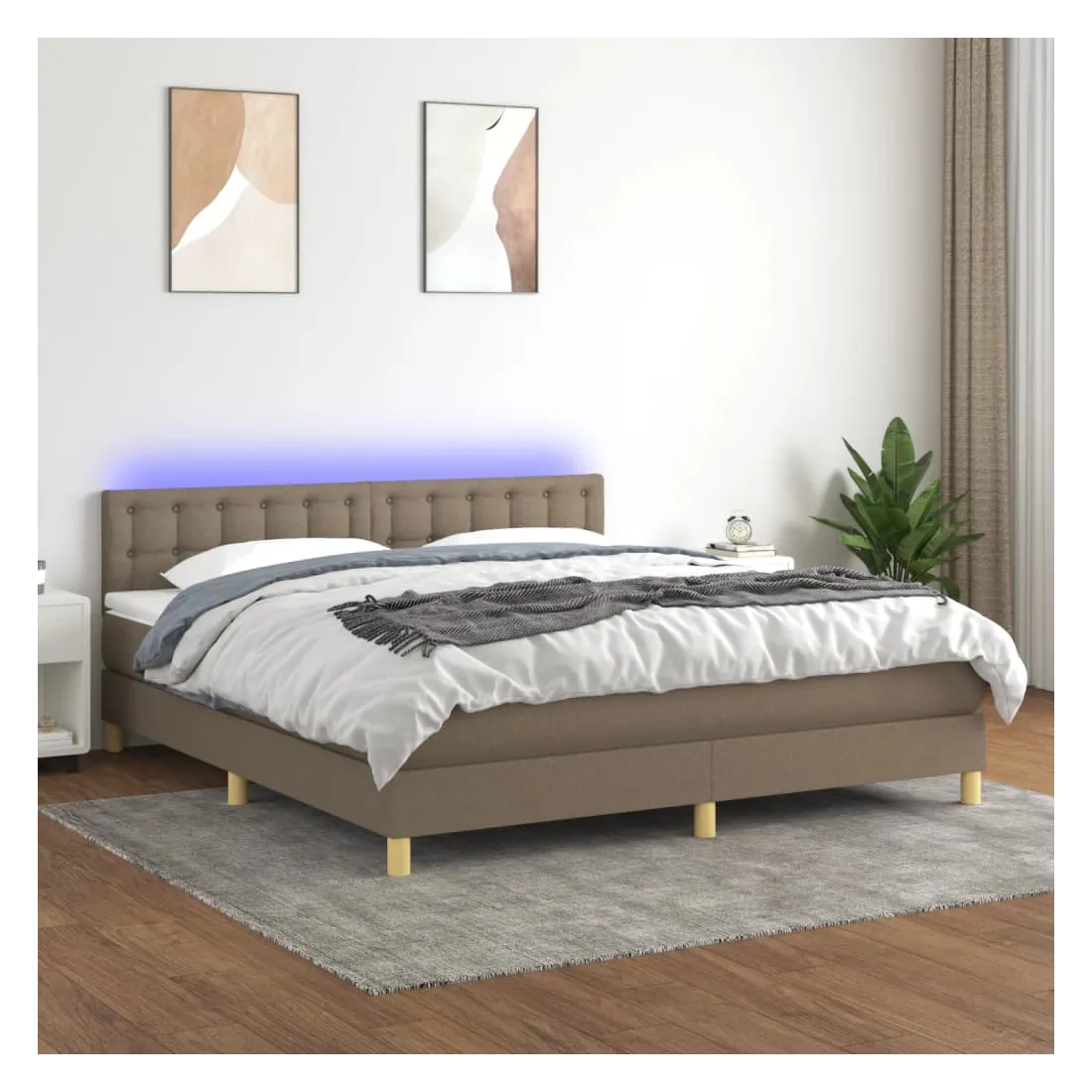 Utilisez ce sommier tapissier avec matelas et LED pour profiter d'un sommeil réparateur ! C'est le point central de votre chambre à coucher. Tissu durable : le tissu présente un aspect simple et épuré, et il est respirant et durable.Tête de lit pratique : la tête de lit est réglable en hauteur selon vos préférences. La tête de lit vous offre un excellent soutien du dos lorsque vous êtes assis dans votre lit pour lire ou regarder la télévision.Bande LED colorée : apportez de l'éclairage dans l'obscurité avec des lumières LED colorées !Matelas à ressorts ensachés : le ressort ensaché individuel intégré est connu pour sa très haute qualité tout en assurant un haut niveau de durabilité et d'adaptabilité. Il peut absorber efficacement le bruit et les chocs causés par les sauts et les rotations.Protège-matelas doux pour la peau : le protège-matelas est recouvert d'un tissu résistant et doux pour la peau, ce qui le rend souple et confortable. Remarque :Pour des raisons d'hygiène, le matelas ne peut pas être retourné si l'emballage est retiré ou ouvert.Chaque produit est livré avec un manuel de montage dans la boîte pour un montage facile.Seule la partie avec un symbole de ciseaux peut être coupée et seule la partie avec l'USB continuera à fonctionner comme avant.Ce produit est doté d'un connecteur USB, mais la source d'alimentation certifiée de USB 5V n'est pas incluse.