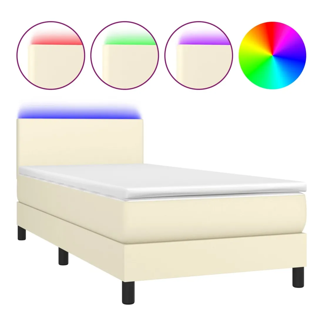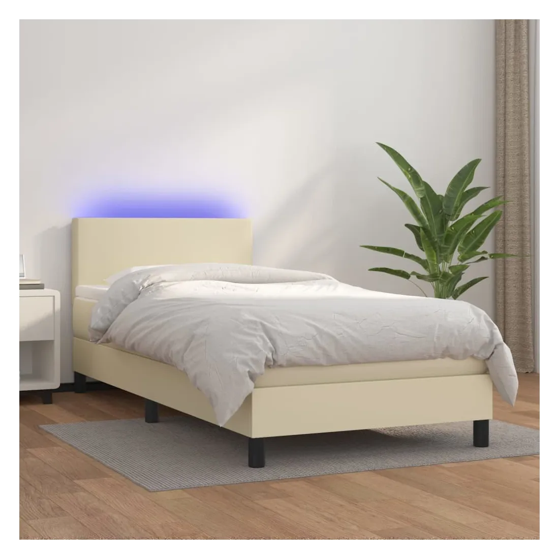 Sommier à lattes de lit et matelas et LED Crème 100x200 cm
