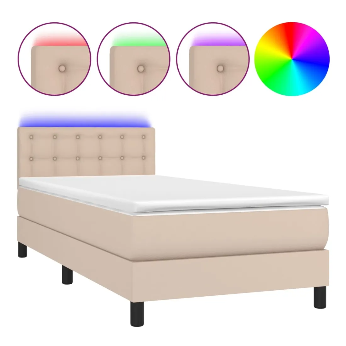Sommier à lattes de lit avec matelas et LED Cappuccino 80x200cm