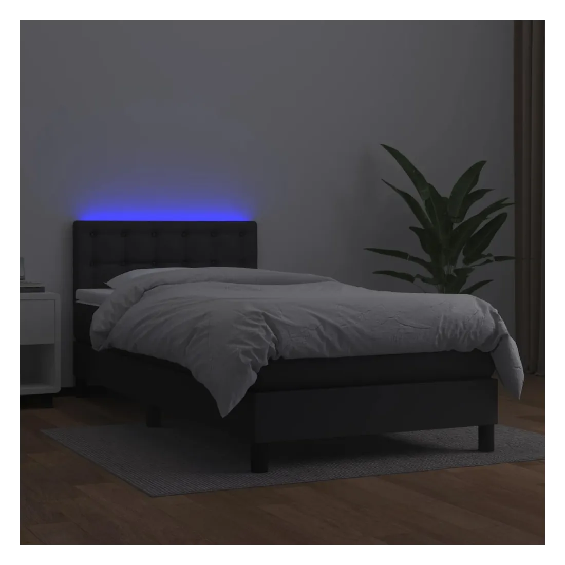 Utilisez ce sommier tapissier avec matelas et LED pour profiter d'un sommeil réparateur ! C'est le point central de votre chambre à coucher. Similicuir durable : le similicuir de qualité supérieure est un matériau très durable. Il est résistant aux taches, ce qui le rend facile à nettoyer avec un chiffon humide. La surface lisse donne également un aspect luxueux et la beauté du cuir véritable.Tête de lit pratique : la tête de lit est réglable en hauteur selon vos préférences. La tête de lit vous offre un excellent soutien du dos lorsque vous êtes assis dans votre lit pour lire ou regarder la télévision.Bande LED colorée : apportez de l'éclairage dans l'obscurité avec des lumières LED colorées !Matelas à ressorts ensachés : le ressort ensaché individuel intégré est connu pour sa très haute qualité tout en assurant un haut niveau de durabilité et d'adaptabilité. Il peut absorber efficacement le bruit et les chocs causés par les sauts et les rotations.Protège-matelas doux pour la peau : le protège-matelas est recouvert d'un tissu résistant et doux pour la peau, ce qui le rend souple et confortable. Remarque :Pour des raisons d'hygiène, le matelas ne peut pas être retourné si l'emballage est retiré ou ouvert.Chaque produit est livré avec un manuel de montage dans la boîte pour un montage facile.Seule la partie avec un symbole de ciseaux peut être coupée et seule la partie avec l'USB continuera à fonctionner comme avant.Ce produit est doté d'un connecteur USB, mais la source d'alimentation certifiée de USB 5V n'est pas incluse.