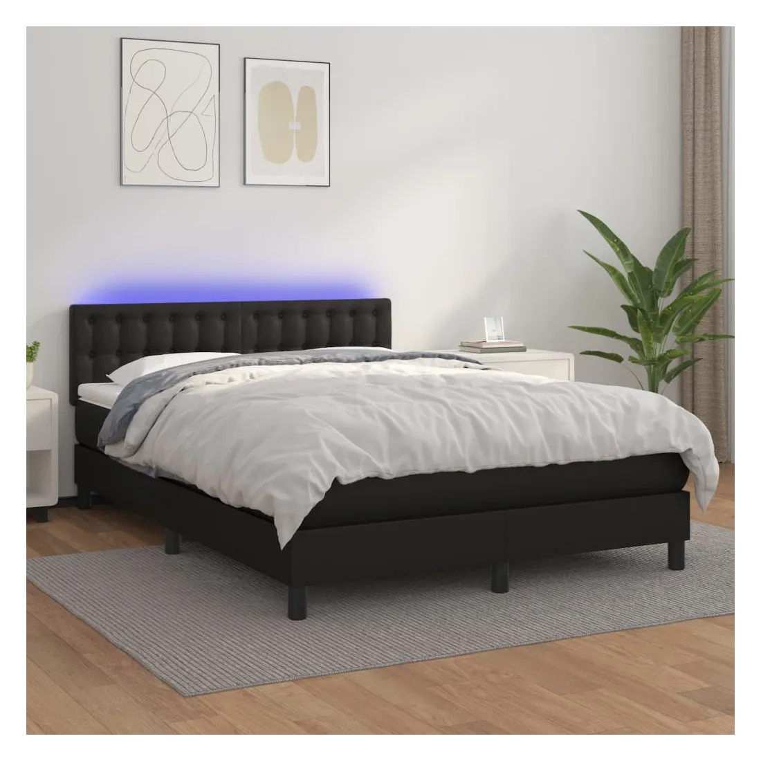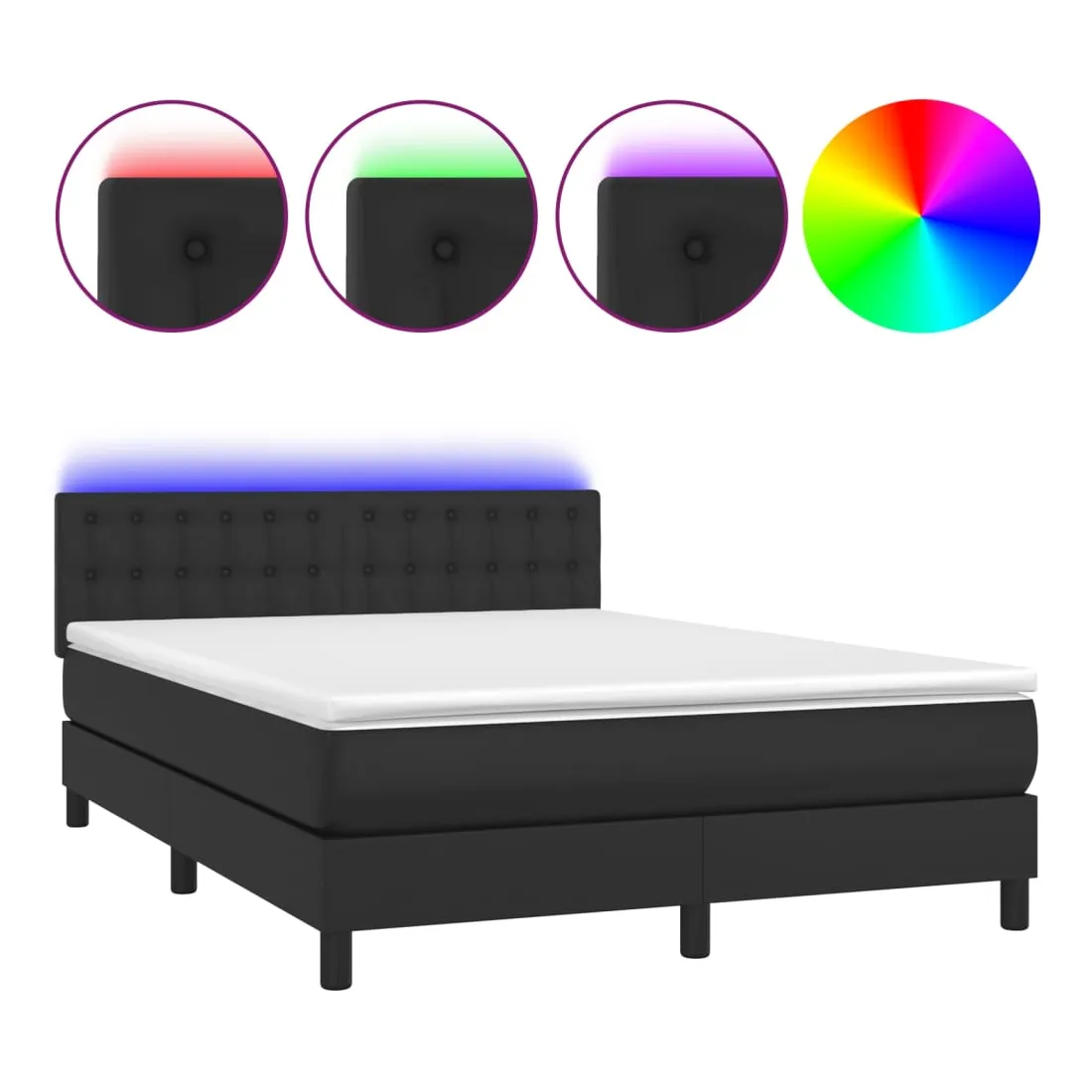 Utilisez ce sommier tapissier avec matelas et LED pour profiter d'un sommeil réparateur ! C'est le point central de votre chambre à coucher. Similicuir durable : le similicuir de qualité supérieure est un matériau très durable. Il est résistant aux taches, ce qui le rend facile à nettoyer avec un chiffon humide. La surface lisse donne également un aspect luxueux et la beauté du cuir véritable.Tête de lit pratique : la tête de lit est réglable en hauteur selon vos préférences. La tête de lit vous offre un excellent soutien du dos lorsque vous êtes assis dans votre lit pour lire ou regarder la télévision.Bande LED colorée : apportez de l'éclairage dans l'obscurité avec des lumières LED colorées !Matelas à ressorts ensachés : le ressort ensaché individuel intégré est connu pour sa très haute qualité tout en assurant un haut niveau de durabilité et d'adaptabilité. Il peut absorber efficacement le bruit et les chocs causés par les sauts et les rotations.Protège-matelas doux pour la peau : le protège-matelas est recouvert d'un tissu résistant et doux pour la peau, ce qui le rend souple et confortable. Remarque :Pour des raisons d'hygiène, le matelas ne peut pas être retourné si l'emballage est retiré ou ouvert.Chaque produit est livré avec un manuel de montage dans la boîte pour un montage facile.Seule la partie avec un symbole de ciseaux peut être coupée et seule la partie avec l'USB continuera à fonctionner comme avant.Ce produit est doté d'un connecteur USB, mais la source d'alimentation certifiée de USB 5V n'est pas incluse.
