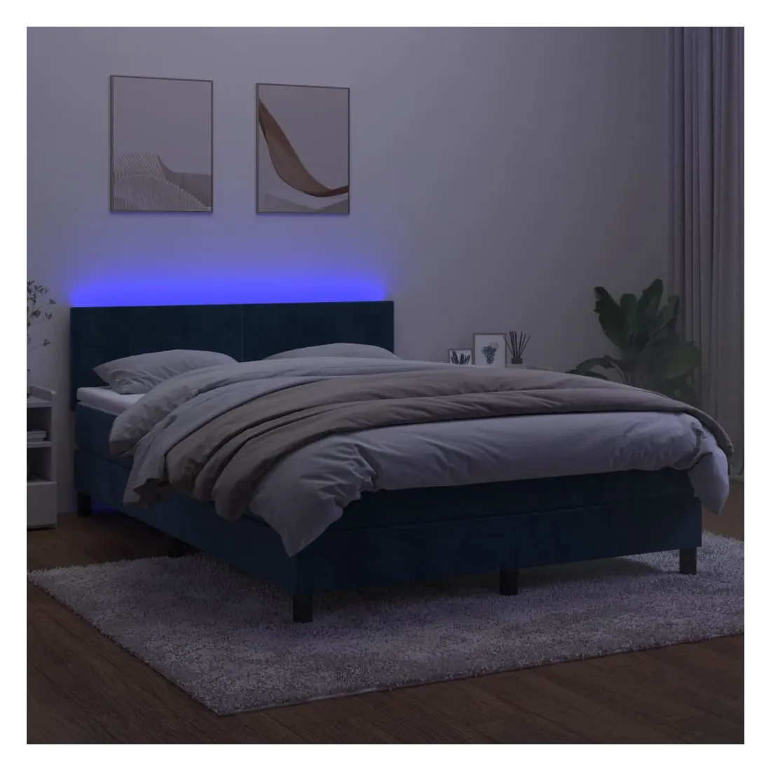 Sommier à lattes de lit avec matelas LED Bleu foncé 140x200 cm